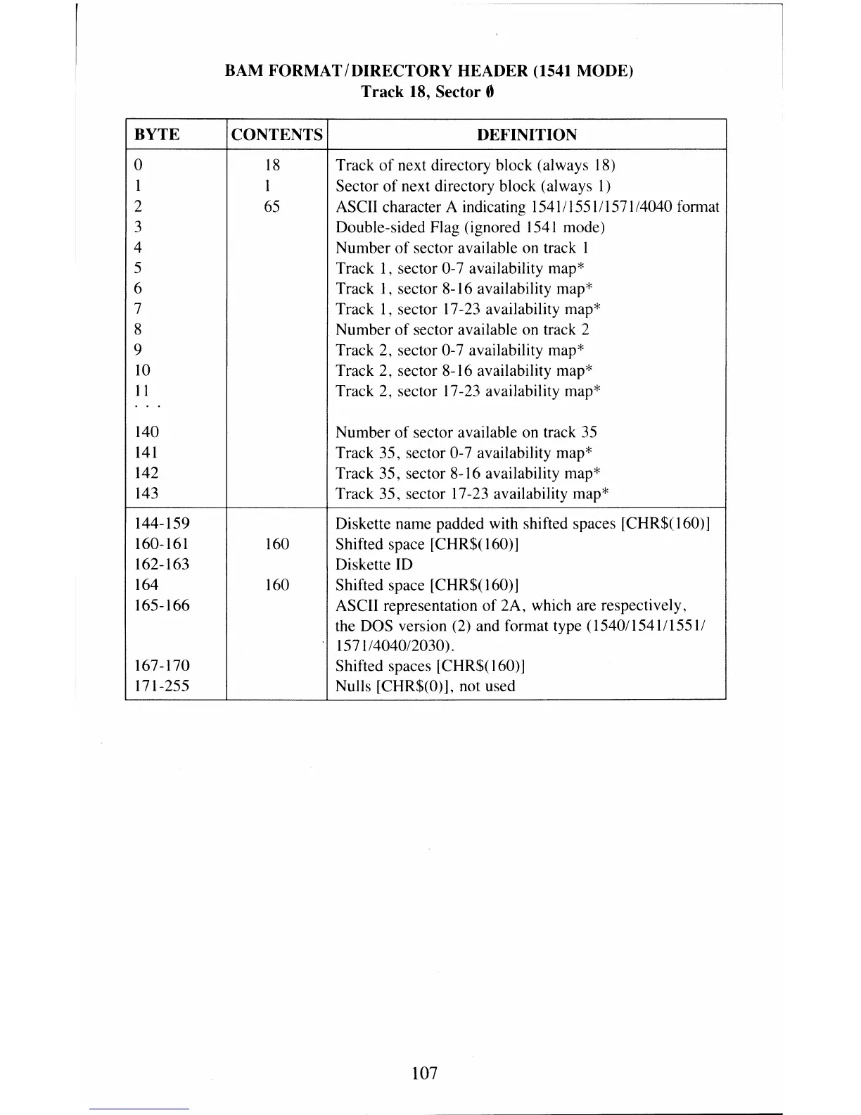 BAM FORMAT/DIRECTORY HEADER (1541 MODE)