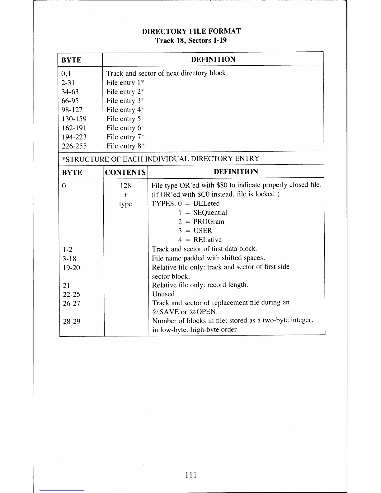 19-20 Relative file only: track and sector