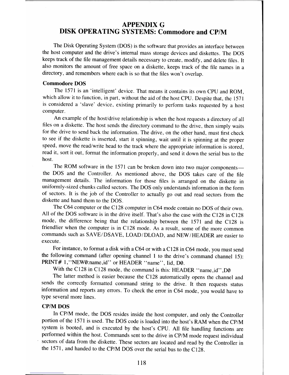 CP/M mode, the DOS resides inside the host computer, and only the Controller