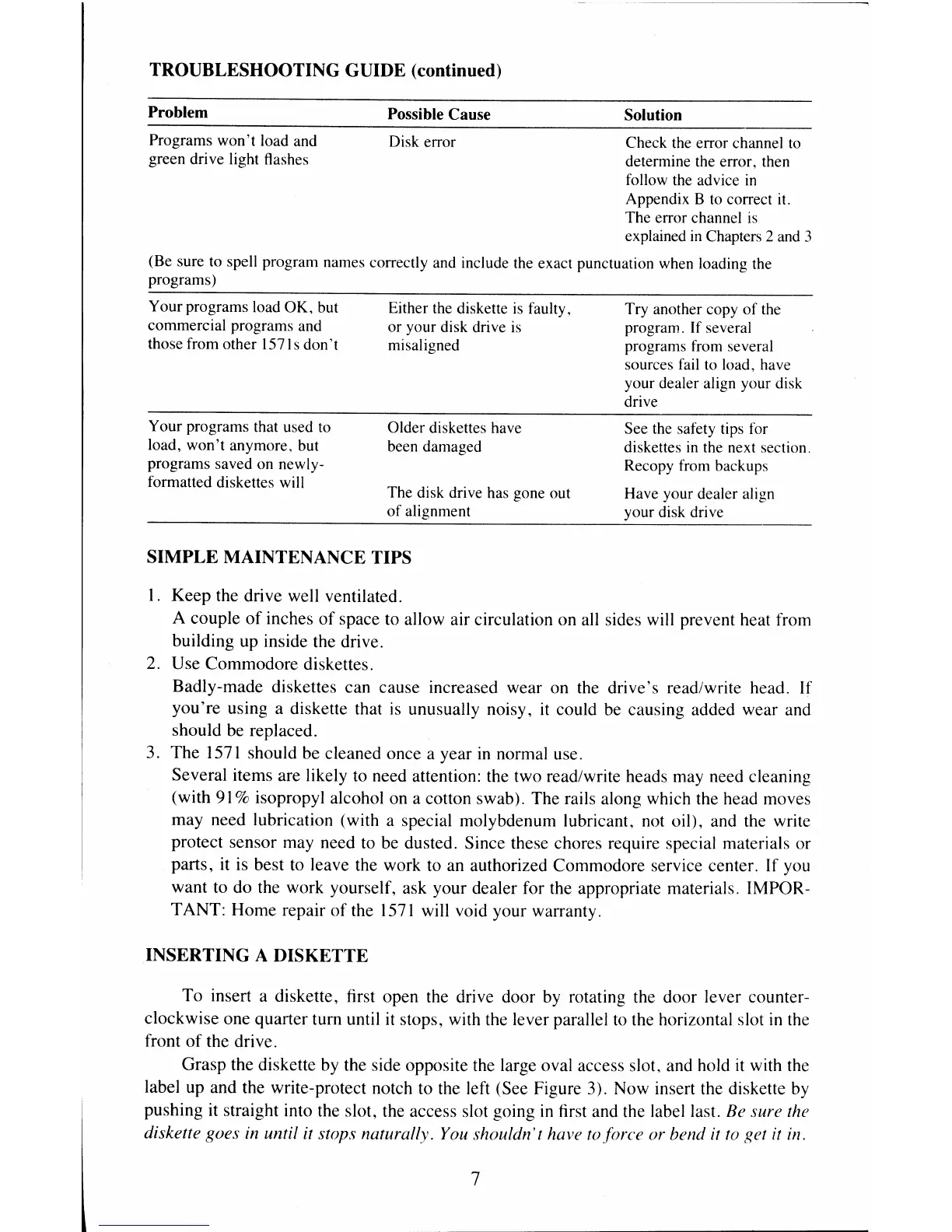 TROUBLESHOOTING GUIDE (continued)