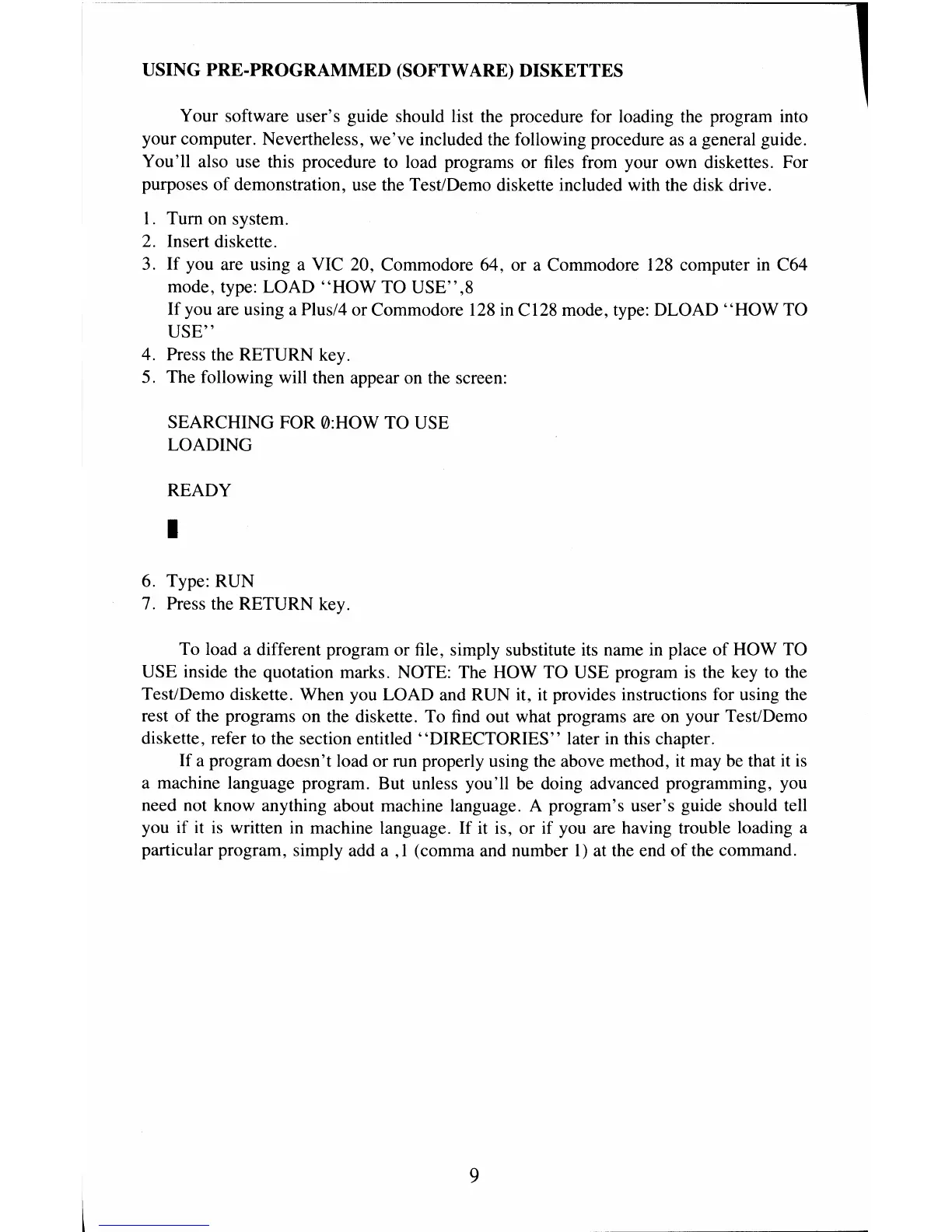USING PRE-PROGRAMMED (SOFTWARE) DISKETTES