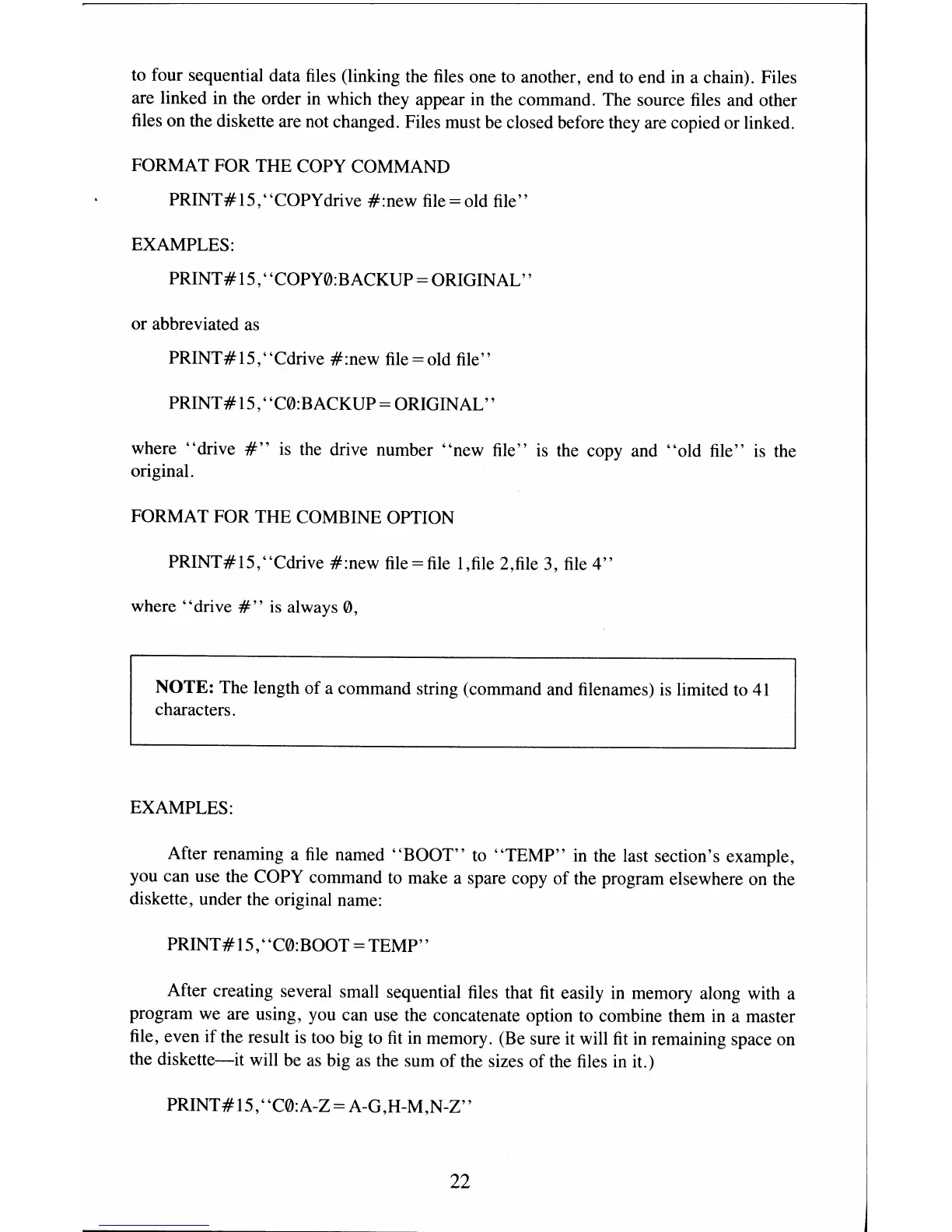 files on the diskette are not changed. Files must be closed before they are copied or linked.