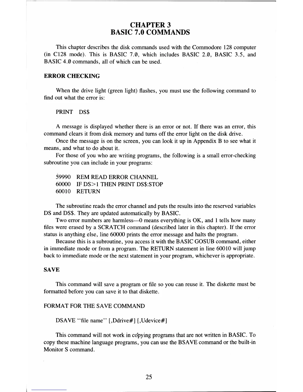 (in C128 mode). This is BASIC 7.0, which includes BASIC