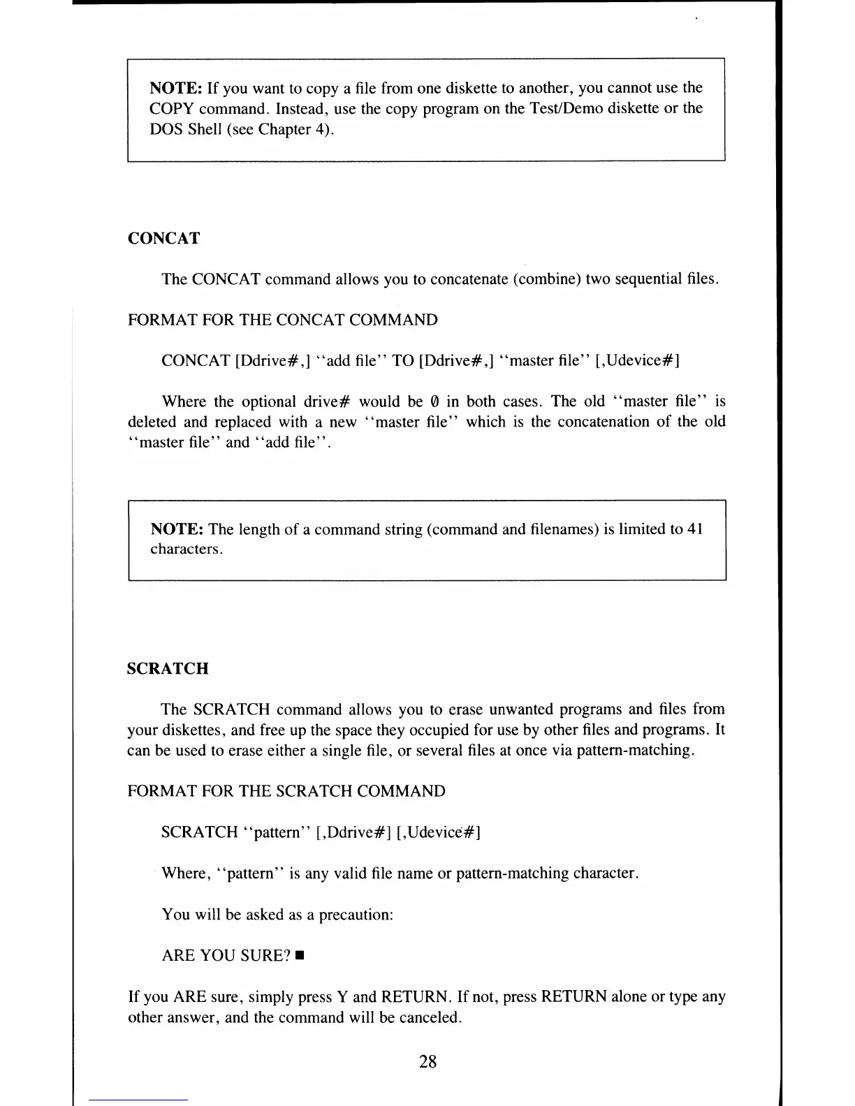 FORMAT FOR THE SCRATCH COMMAND
