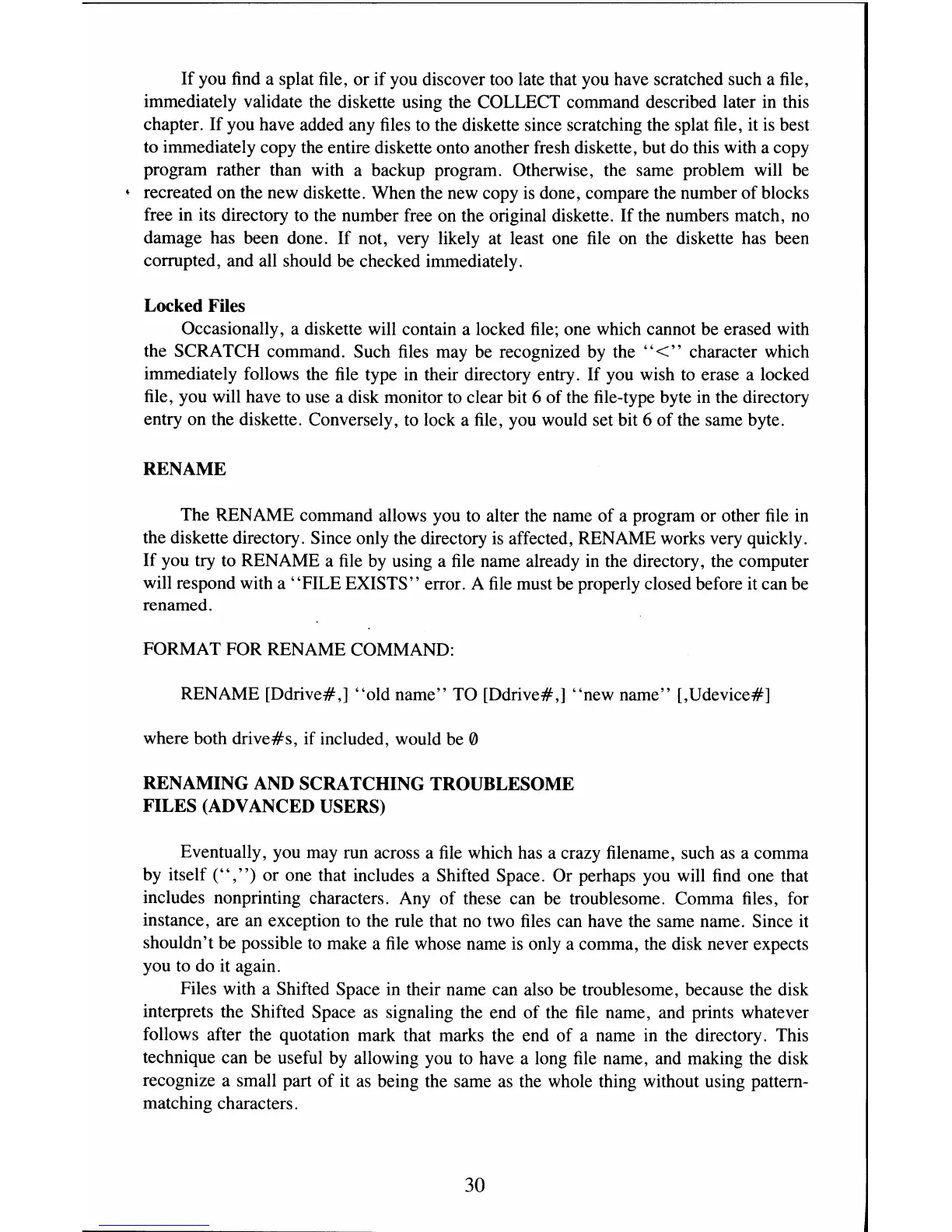 entry on the diskette. Conversely, to lock a file, you would set bit 6