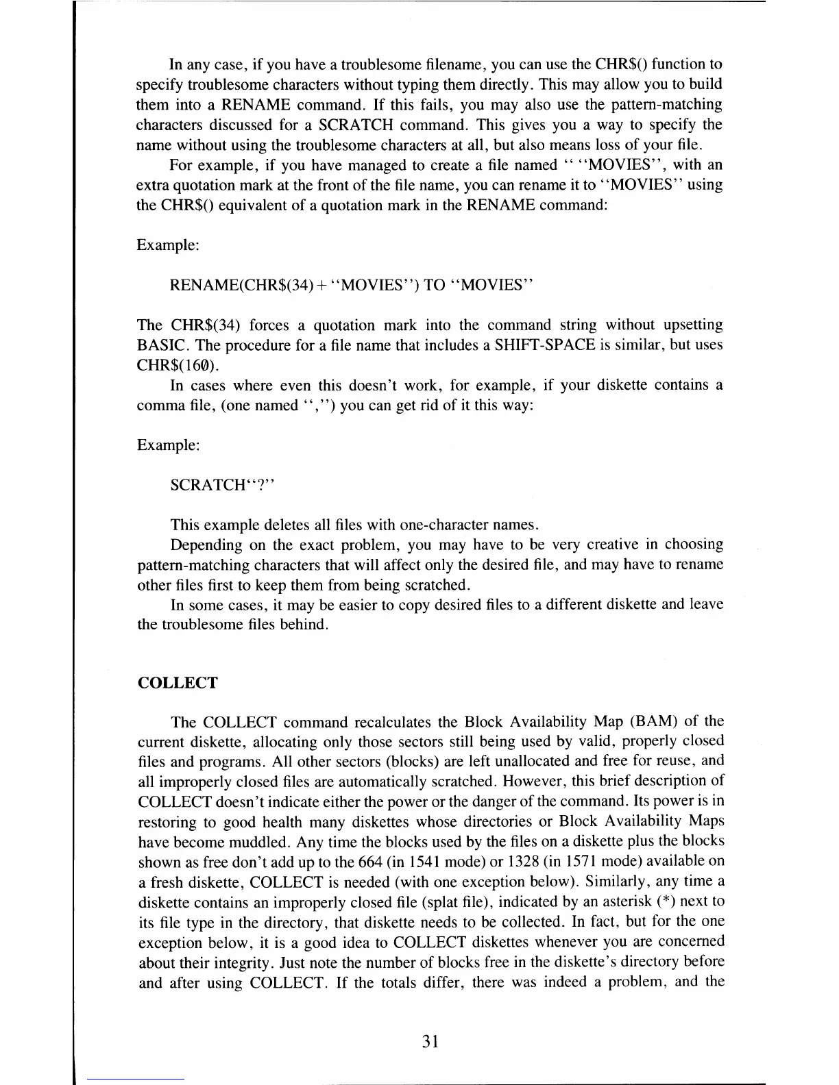 In any case, if you have a troublesome filename, you can use the CHR$O function