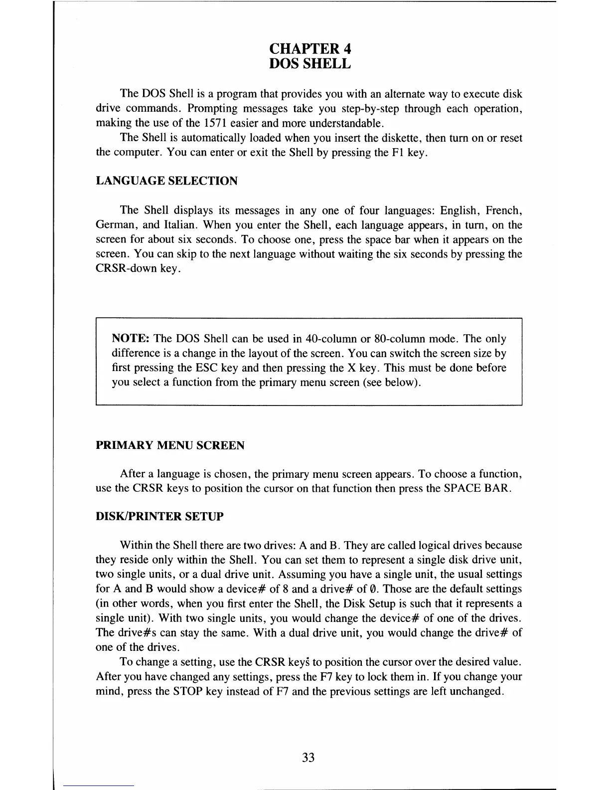 NOTE: The DOS Shell can be used in 40-column or 80-column mode. The only