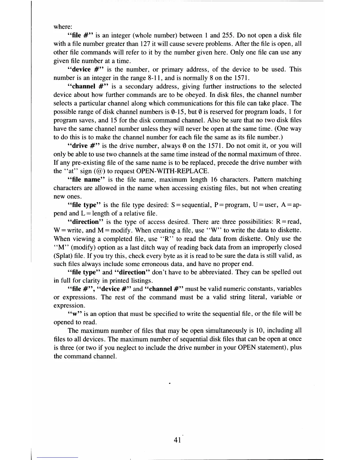 for the disk command channel. Also be sure that no two disk files