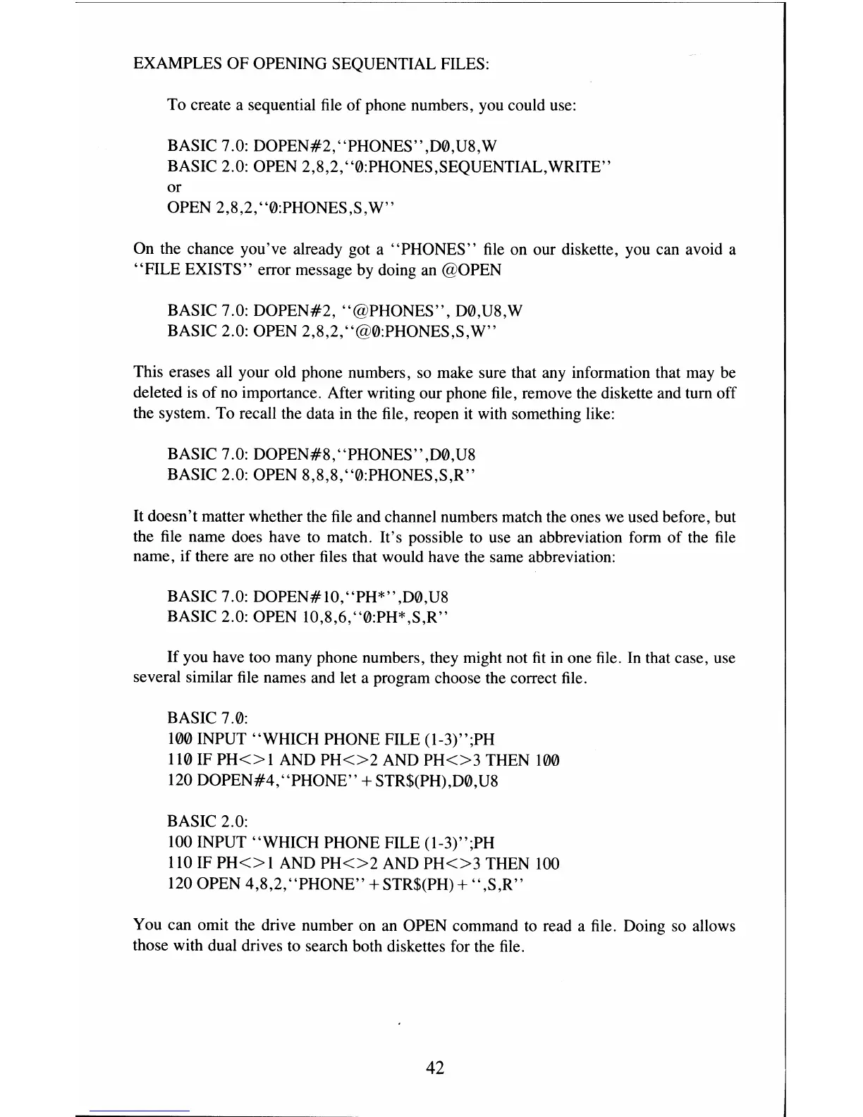 BASIC 2.0: OPEN 2,8,2, "0:PHONES,SEQUENTIAL,WRITE"