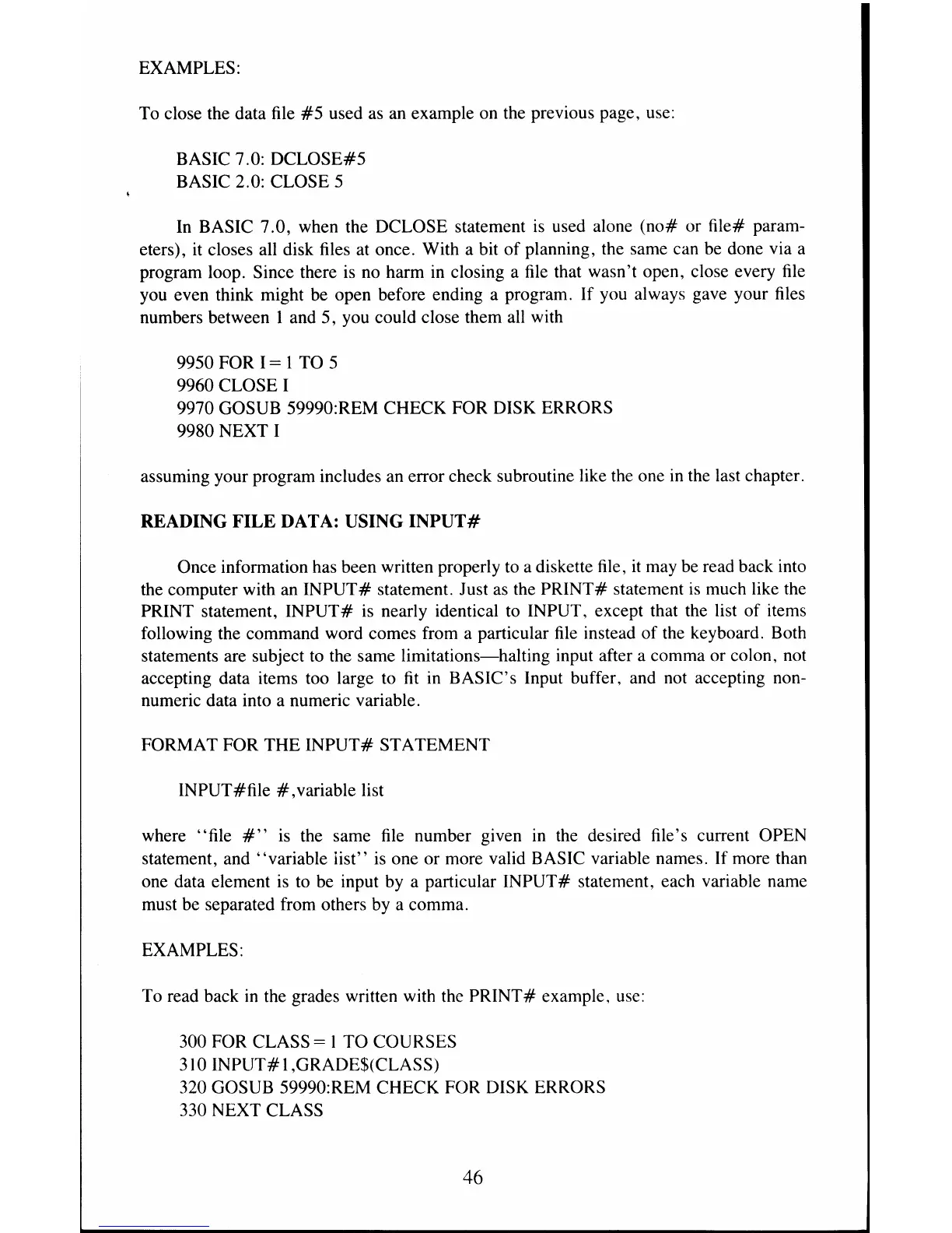 BASIC 7.0: DCLOSE#5