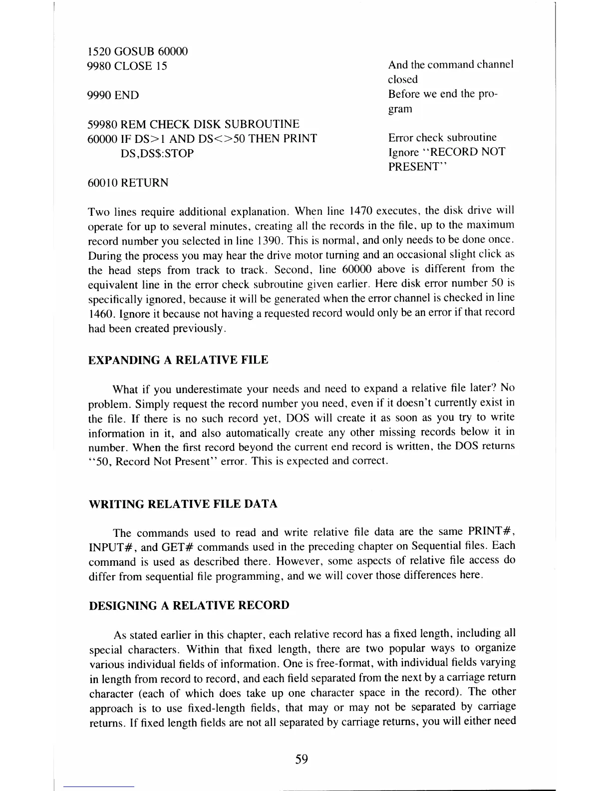 Two lines require additional explanation. When line 1470 executes, the disk drive will