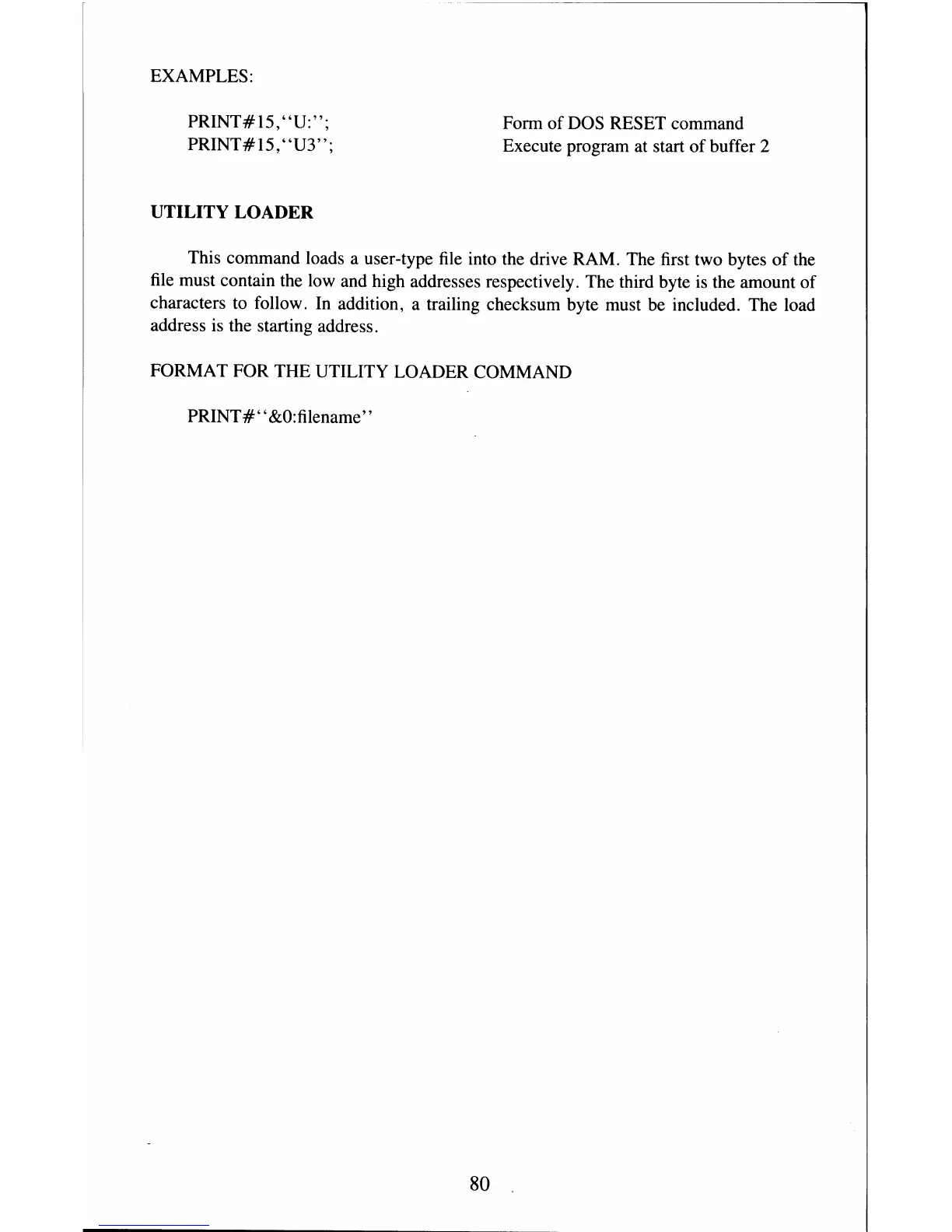 FORMAT FOR THE UTILITY LOADER COMMAND