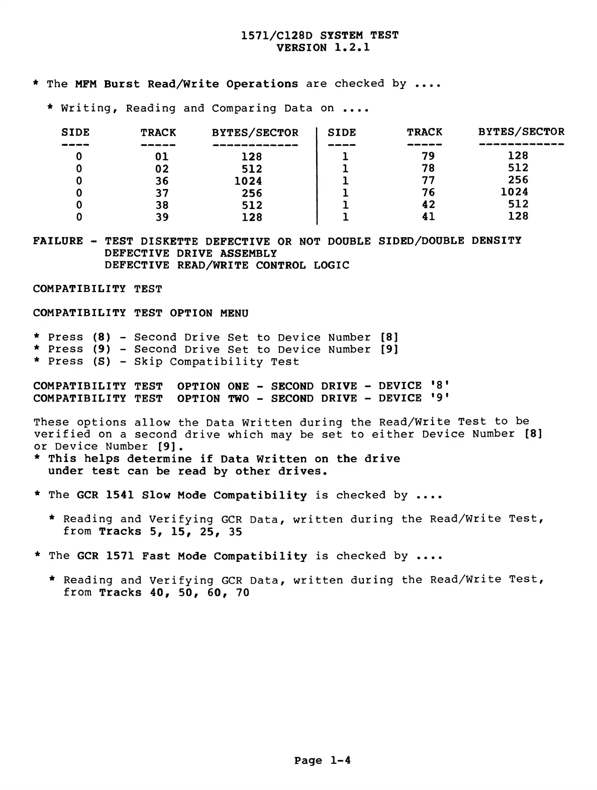 * Reading and Verifying GCR Data, written during the Read/Write Test,