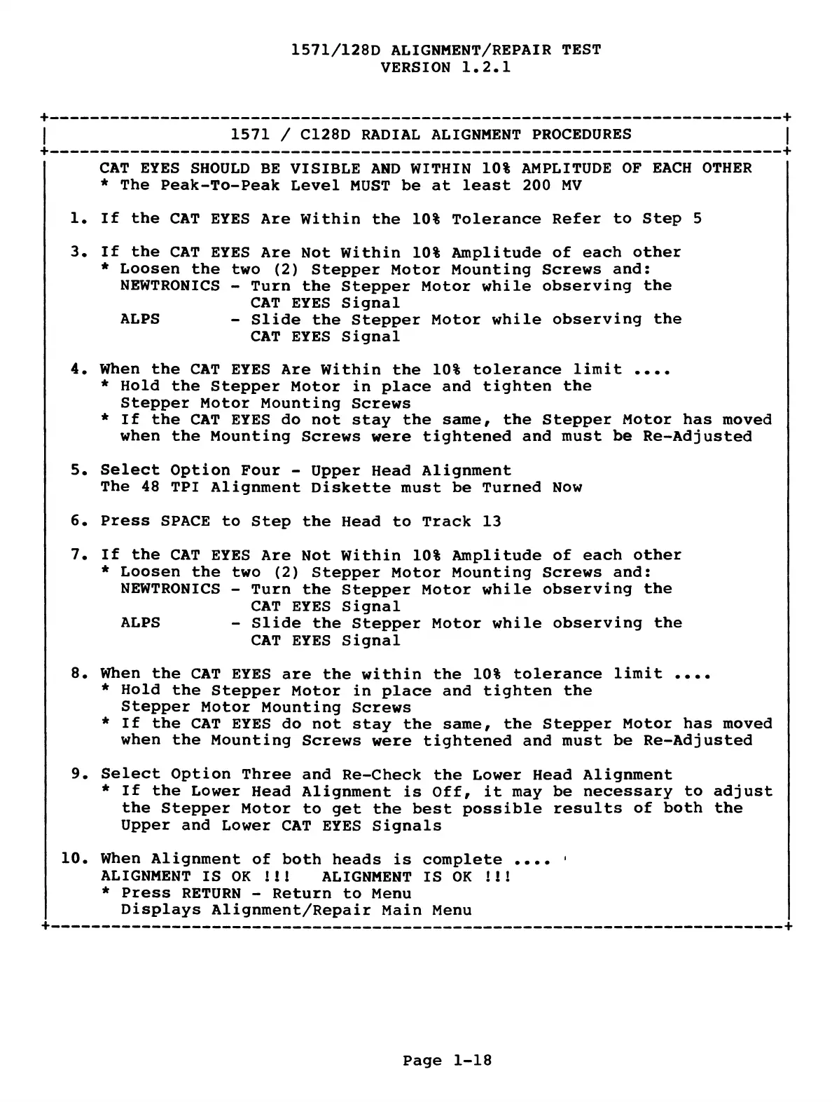 | 1571 / C128D RADIAL ALIGNMENT PROCEDURES |