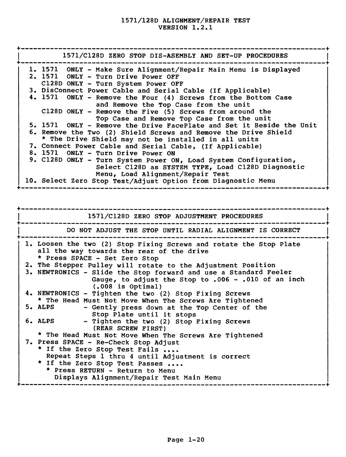 | 1571/C128D ZERO STOP ADJUSTMENT PROCEDURES |