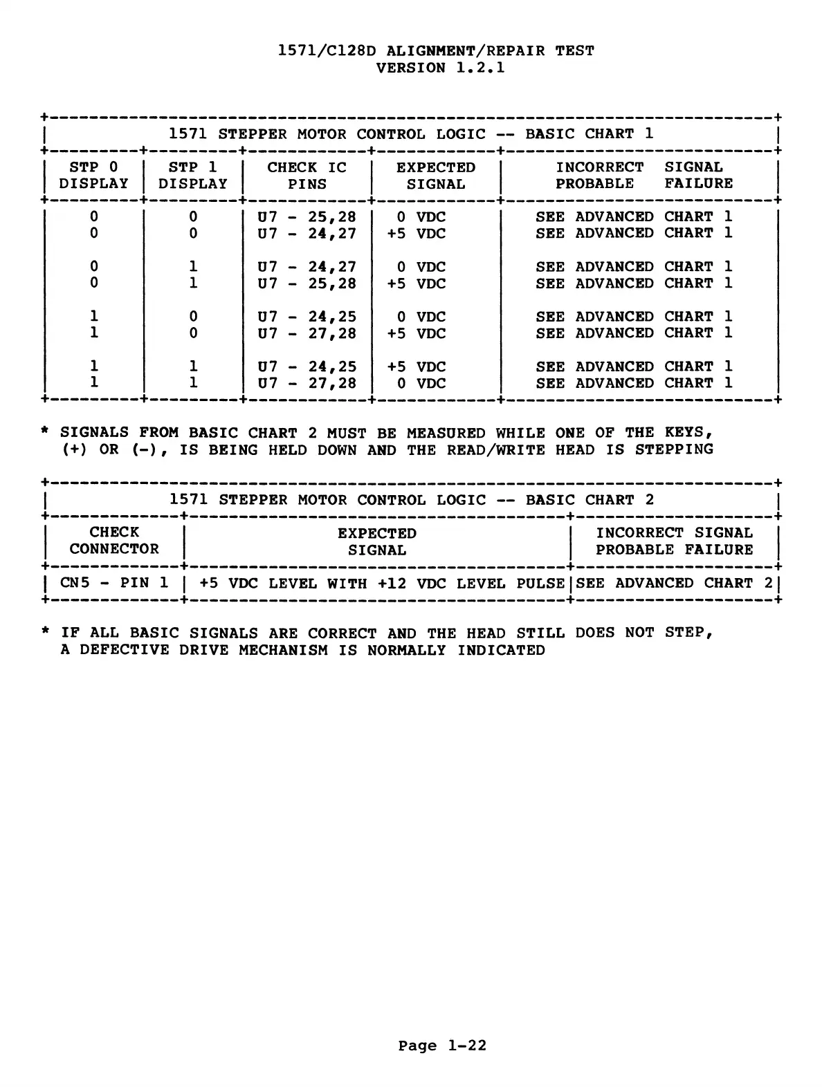 | 1571 STEPPER MOTOR CONTROL LOGIC — BASIC CHART 1 |