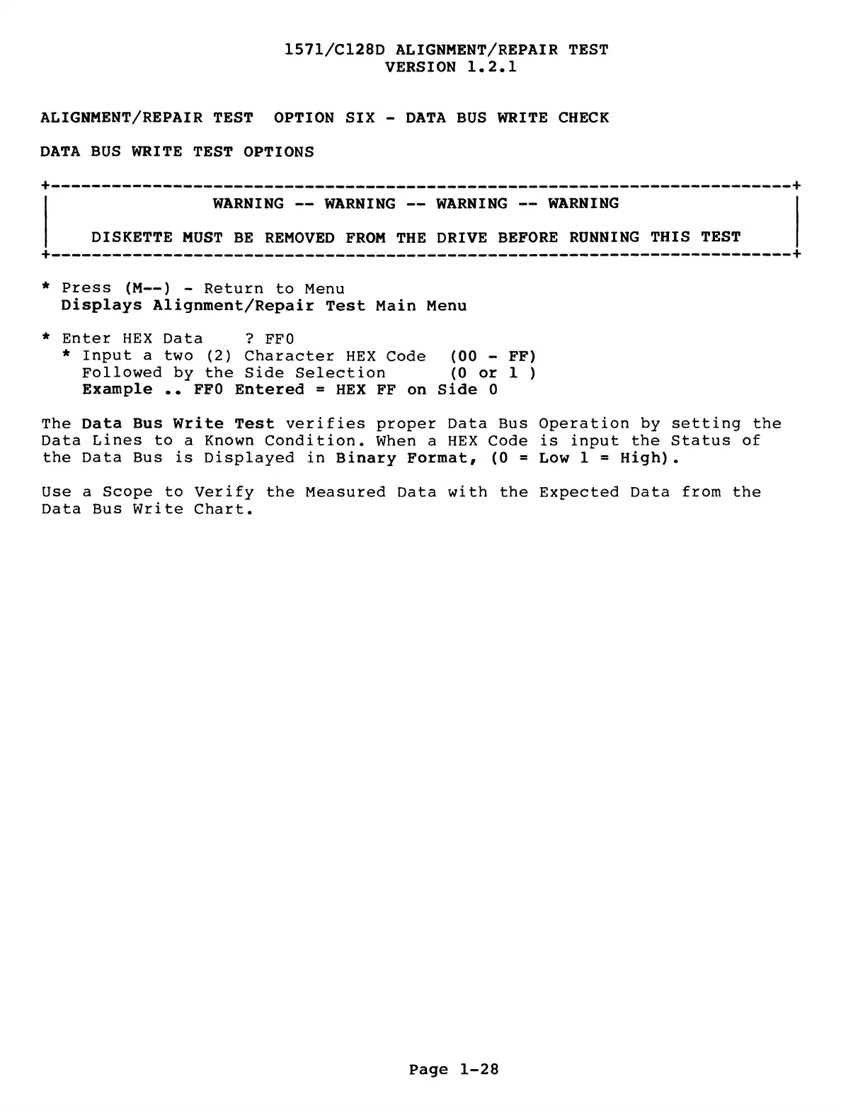ALIGNMENT/REPAIR TEST OPTION SIX - DATA BUS WRITE CHECK