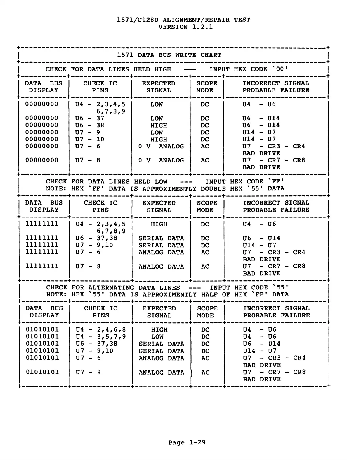 1571/C128D ALIGNMENT/REPAIR TEST