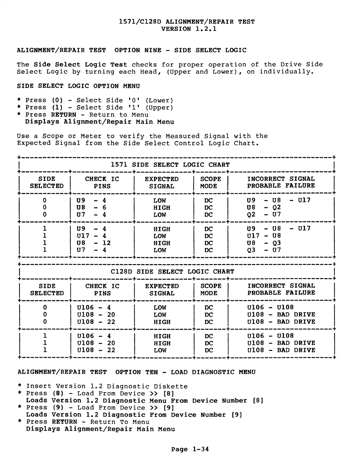 ALIGNMENT/REPAIR TEST OPTION NINE - SIDE SELECT LOGIC