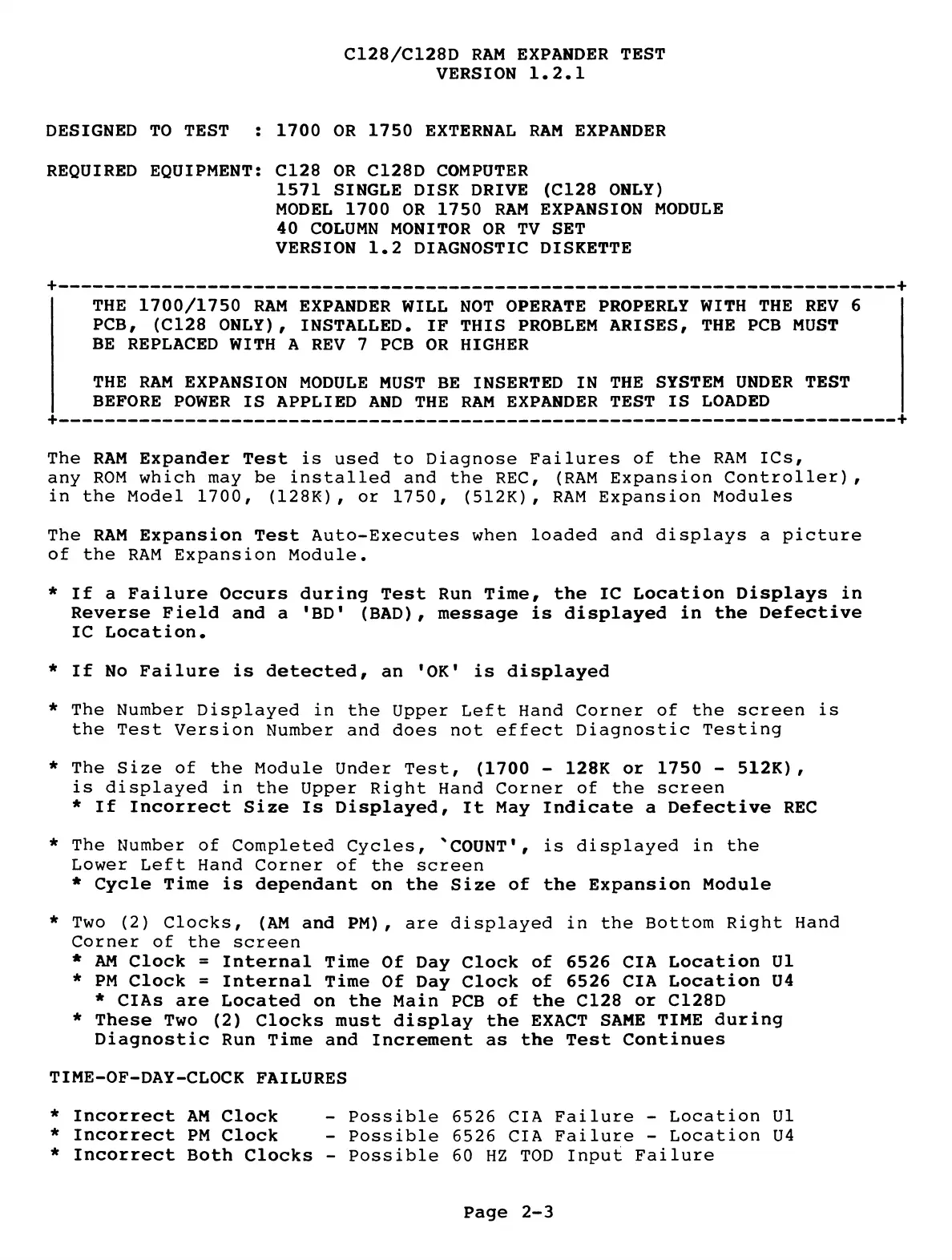 The RAM Expander Test is used to Diagnose Failures of the RAM ICs,