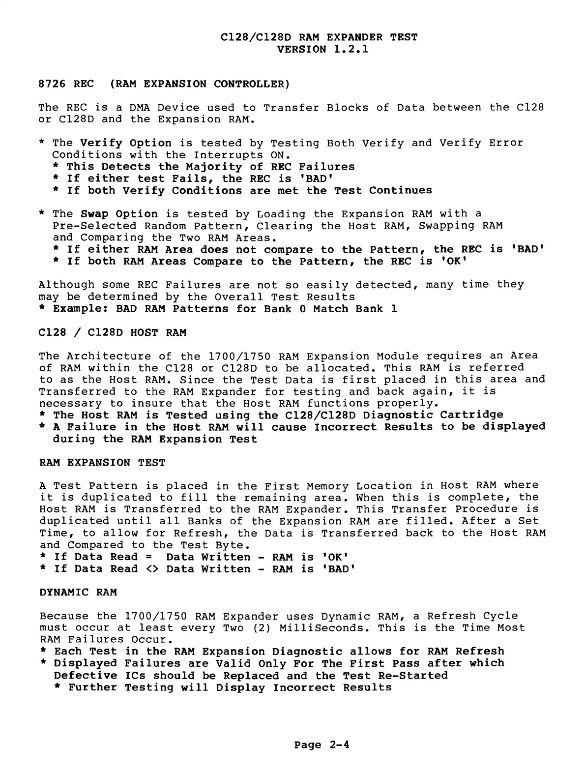* Each Test in the RAM Expansion Diagnostic allows for RAM Refresh