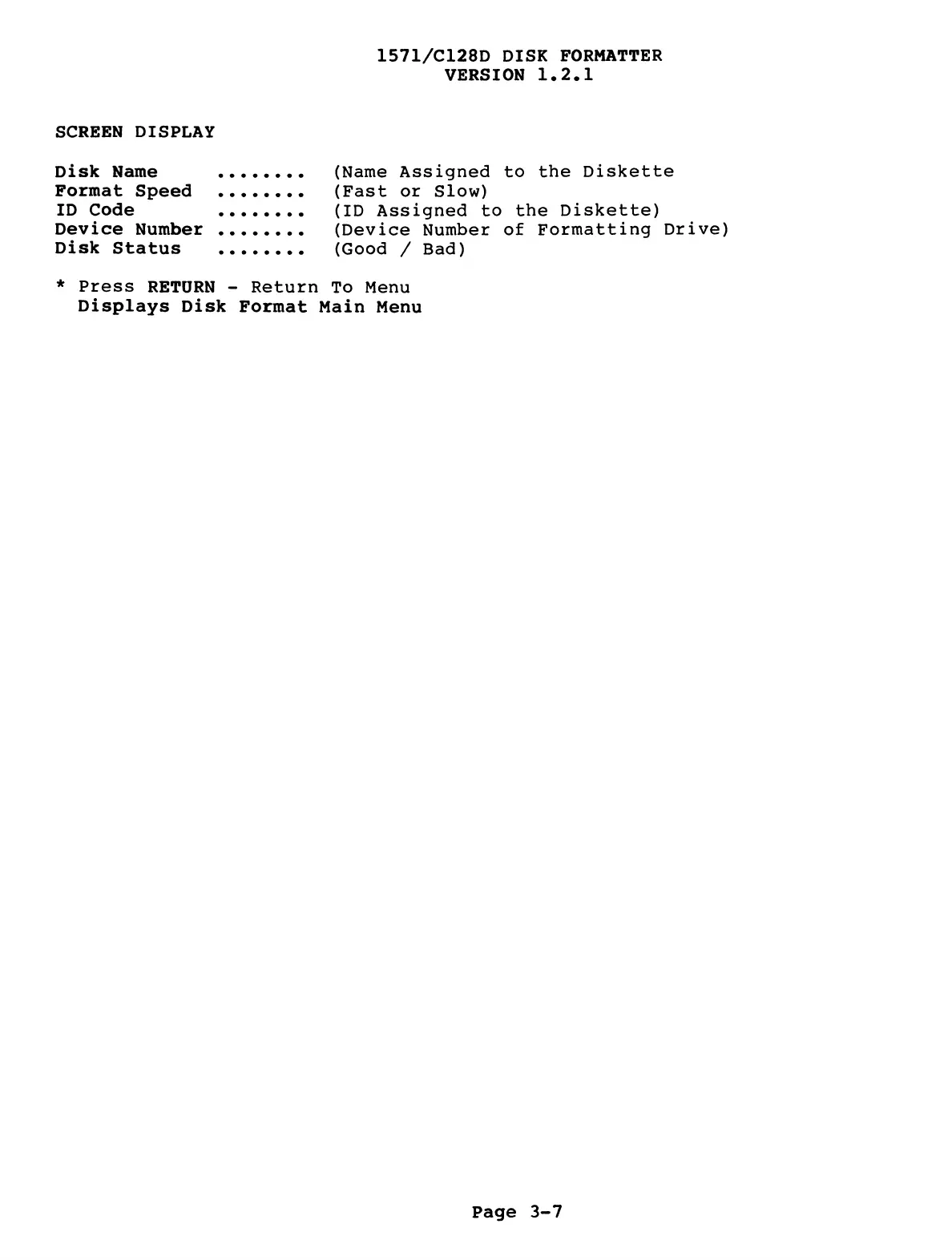 Disk Name ........ (Name Assigned to the Diskette