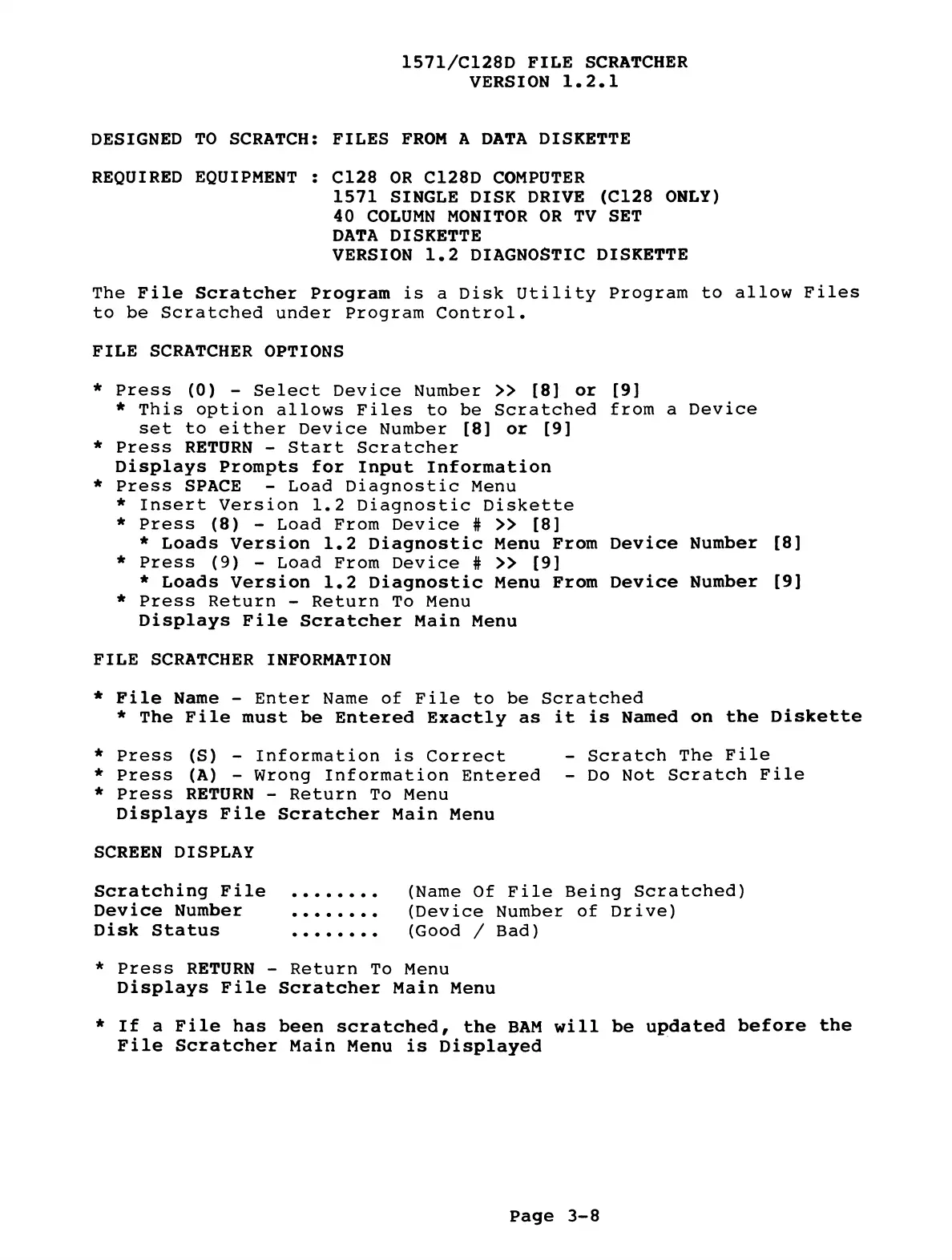 1571/C128D FILE SCRATCHER