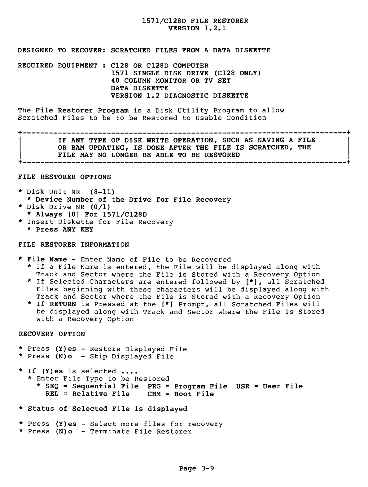 1571/C128D FILE RESTORER