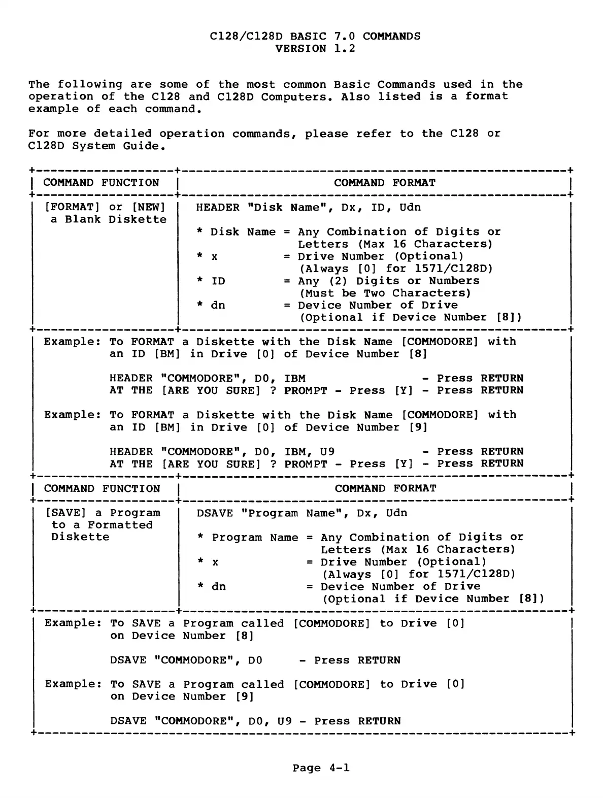 Example: To FORMAT a Diskette with the Disk Name [COMMODORE] with