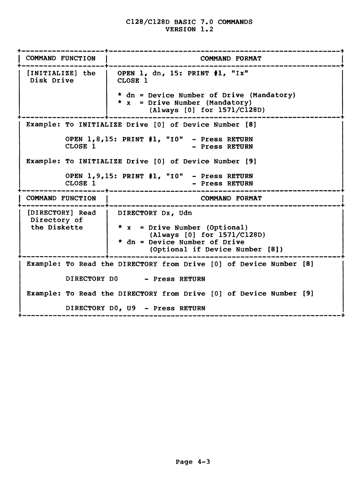 C128/C128D BASIC 7.0 COMMANDS