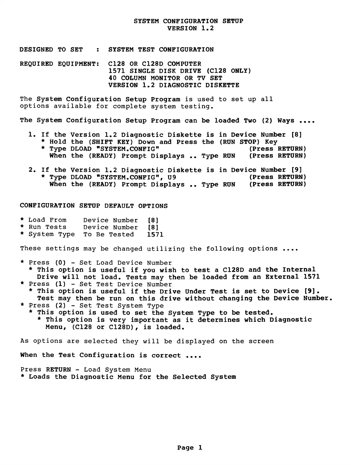 The System Configuration Setup Program can be loaded Two (2) Ways ....