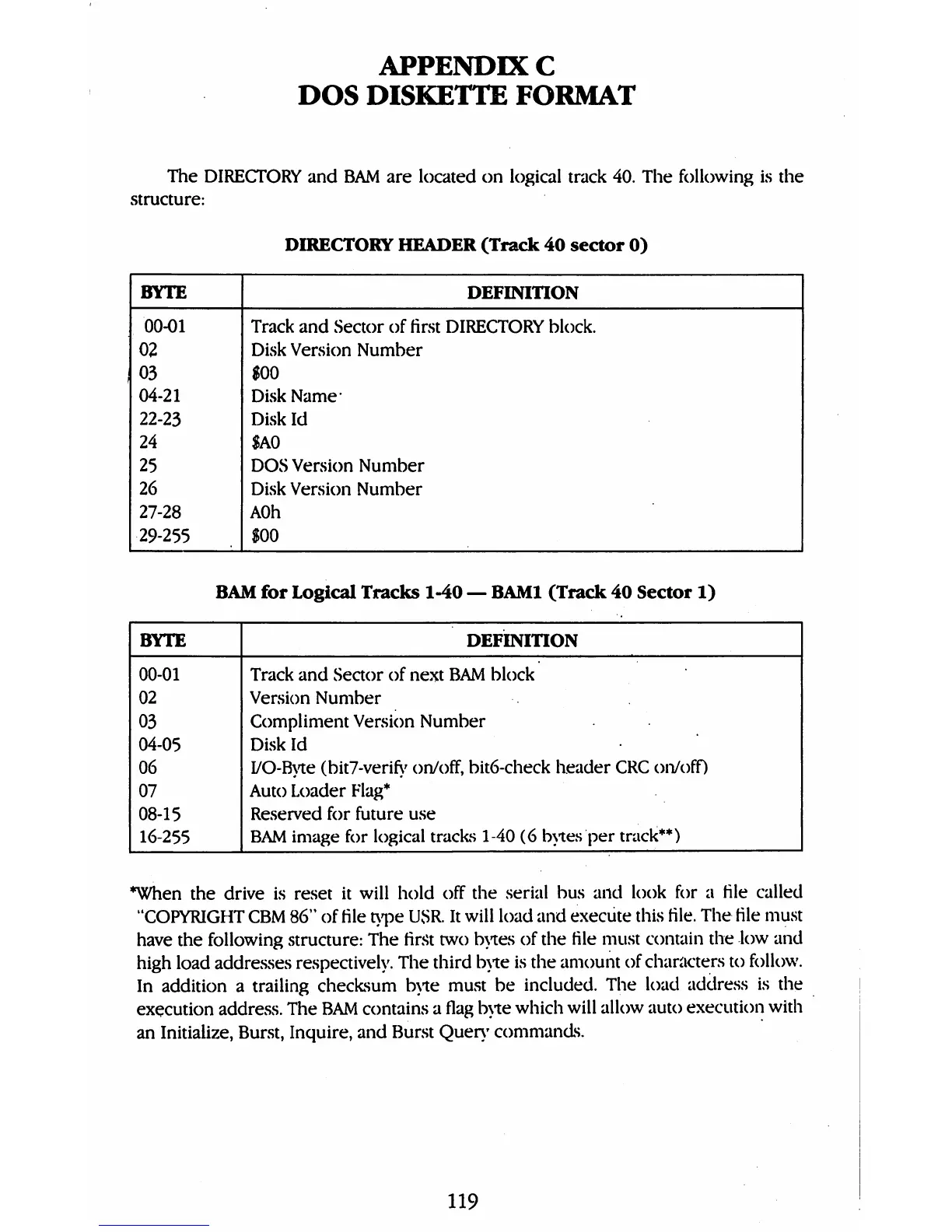 Commodore 1581 - Appendix C: DOS Diskette Format