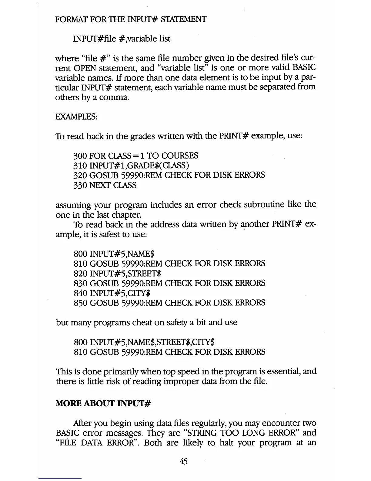 INPUT#5,NAME$,STREET$,CITY$