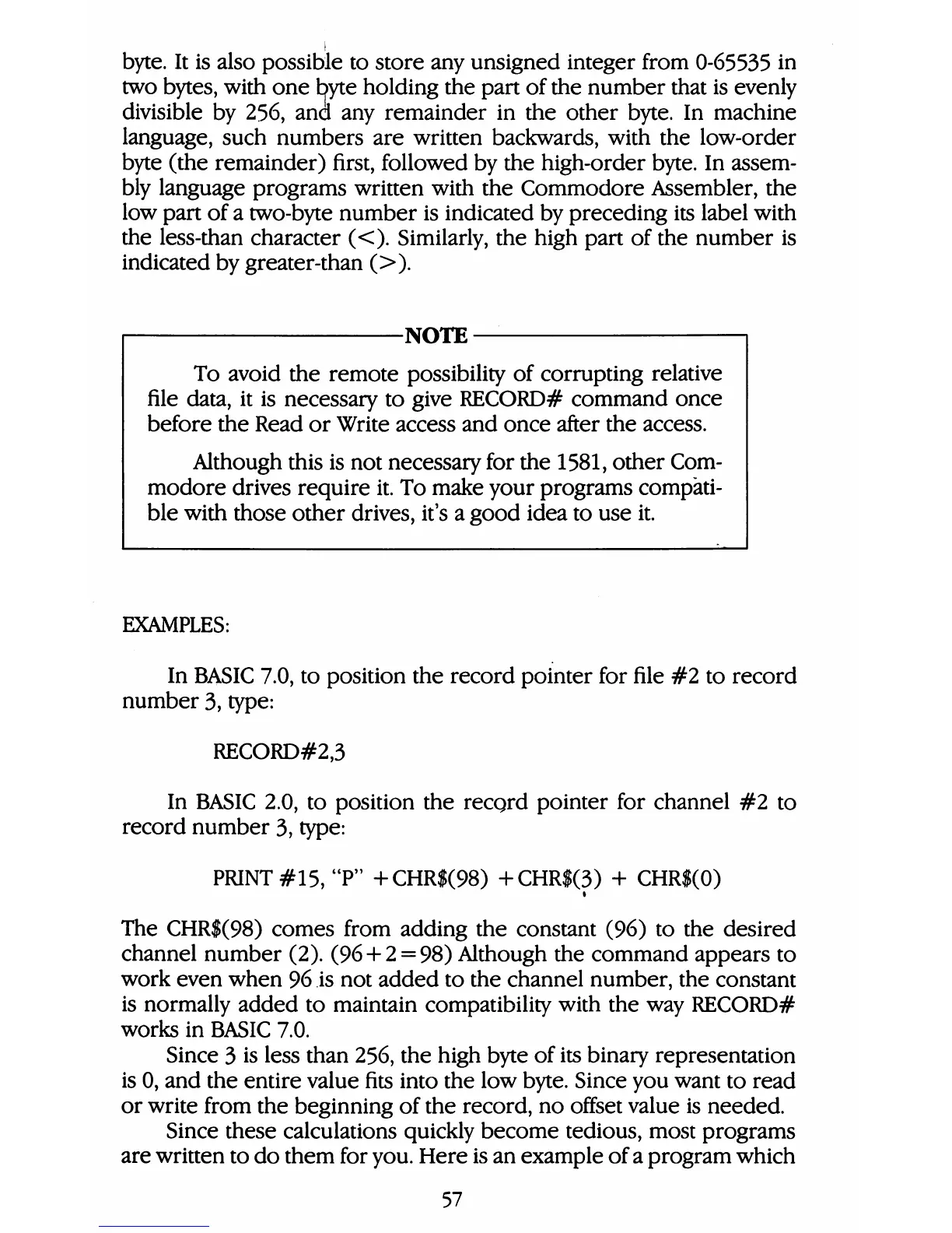 Commodore 1581 - Examples of RECORD# Command Usage