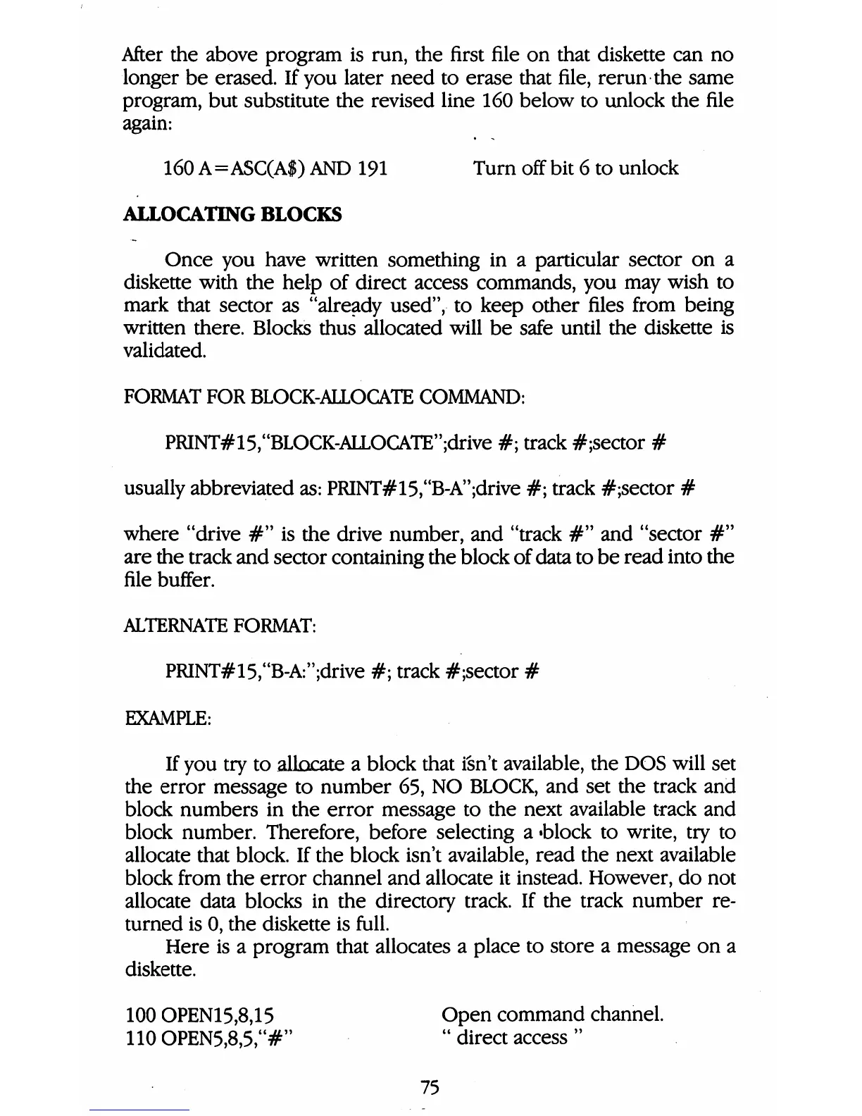 PRINT#15,uBLOCK-ALLOCATE";drive