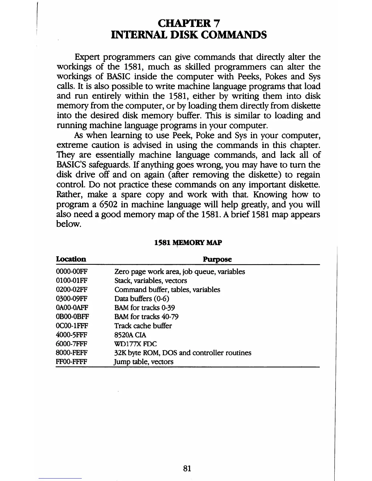 Commodore 1581 - Chapter 7: Internal Disk Commands; 1581 Memory Map
