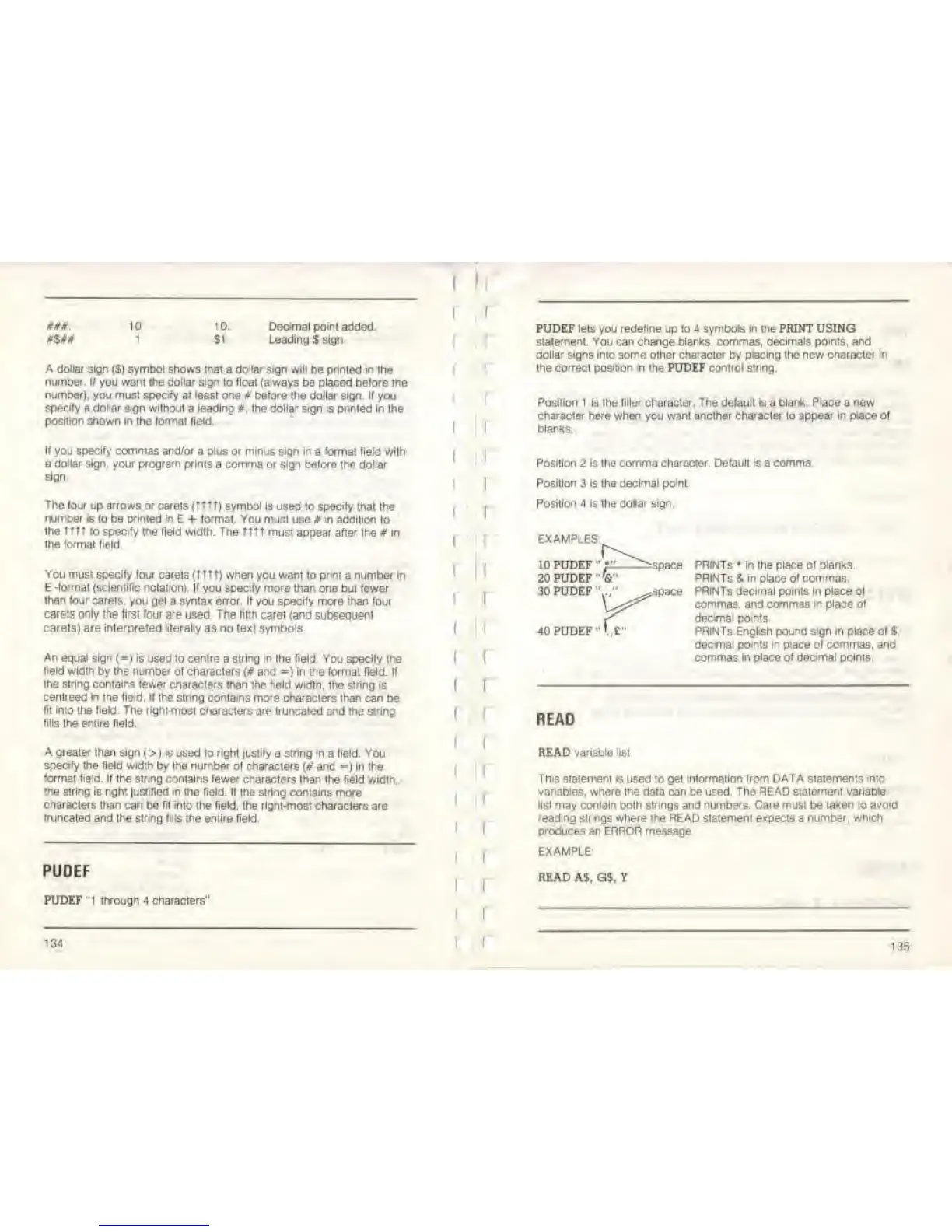 strings where the READ statement
