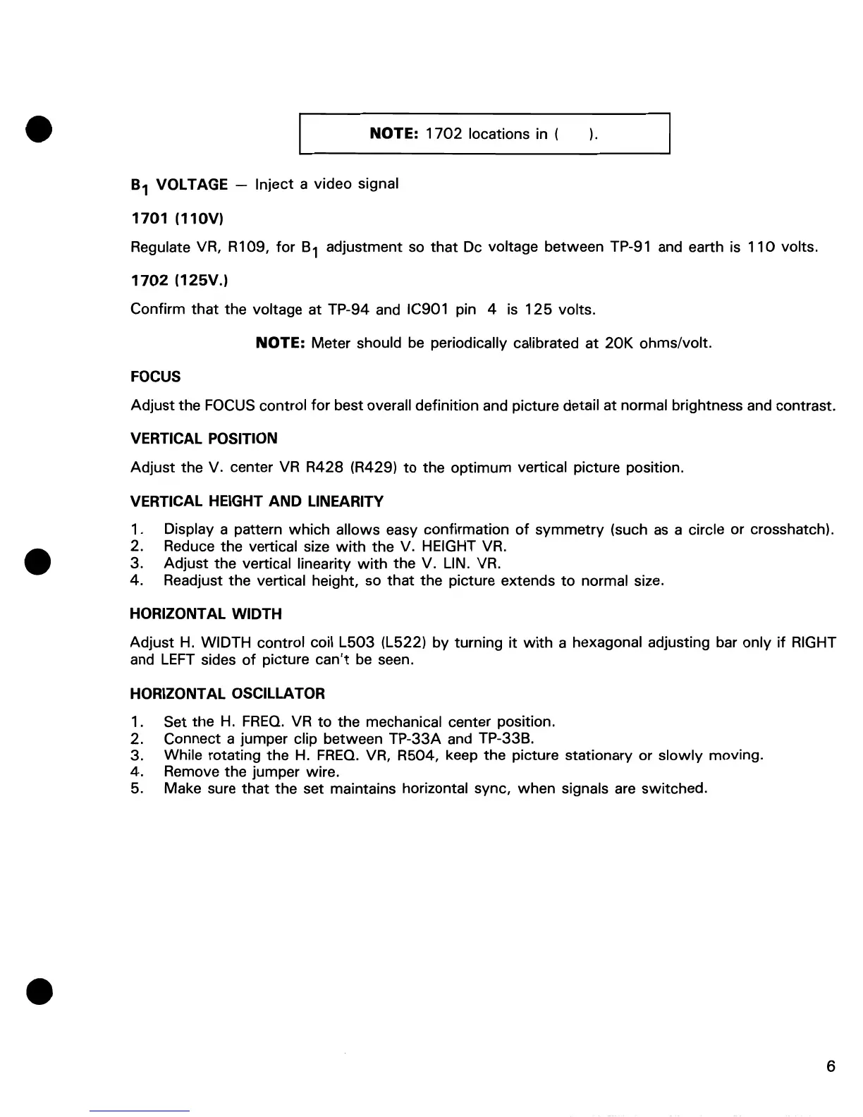 the FOCUS control for best overall definition and picture detail at normal brightness and contrast.
