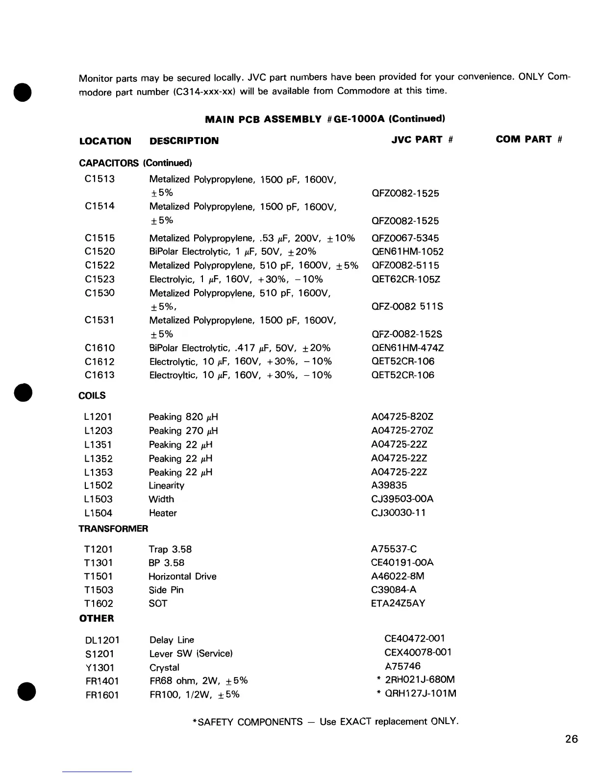secured locally. JVC part numbers have been provided for your convenience. ONLY Com-