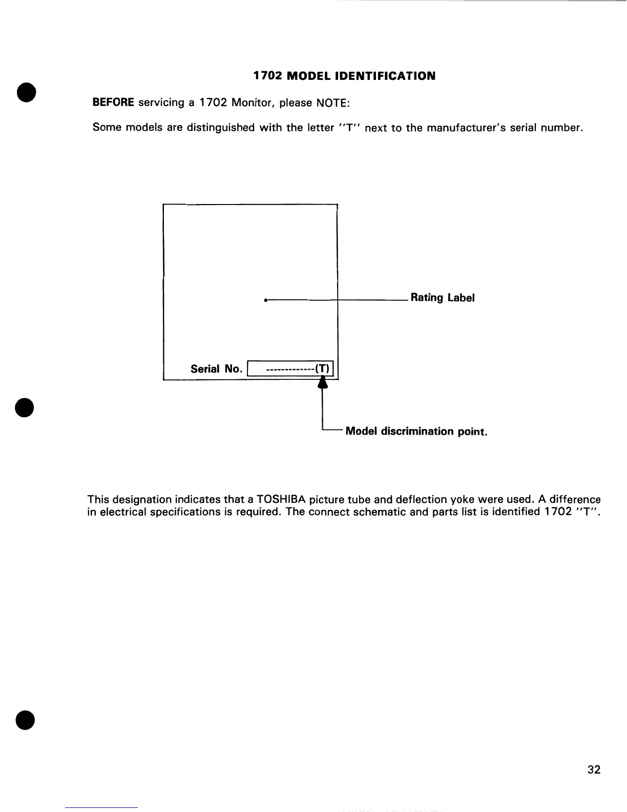 a TOSHIBA picture tube and deflection yoke were used. A difference