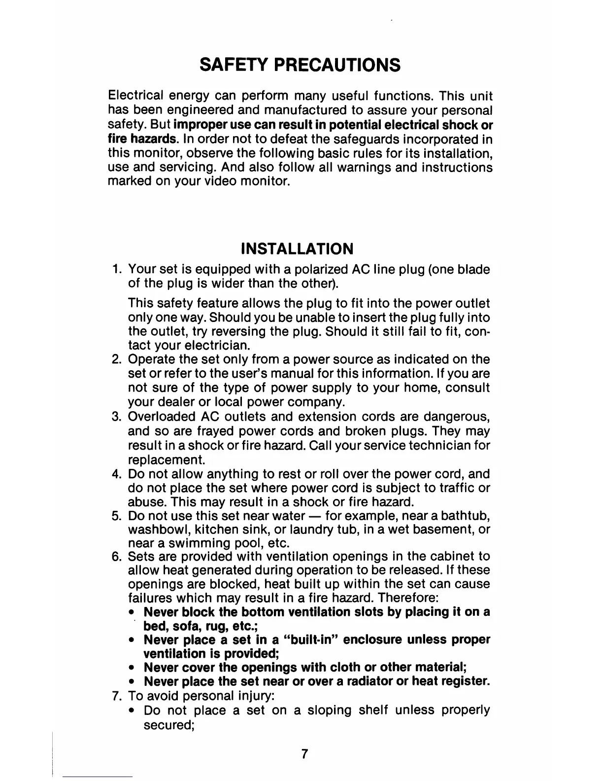 openings are blocked, heat built up within the set can cause
