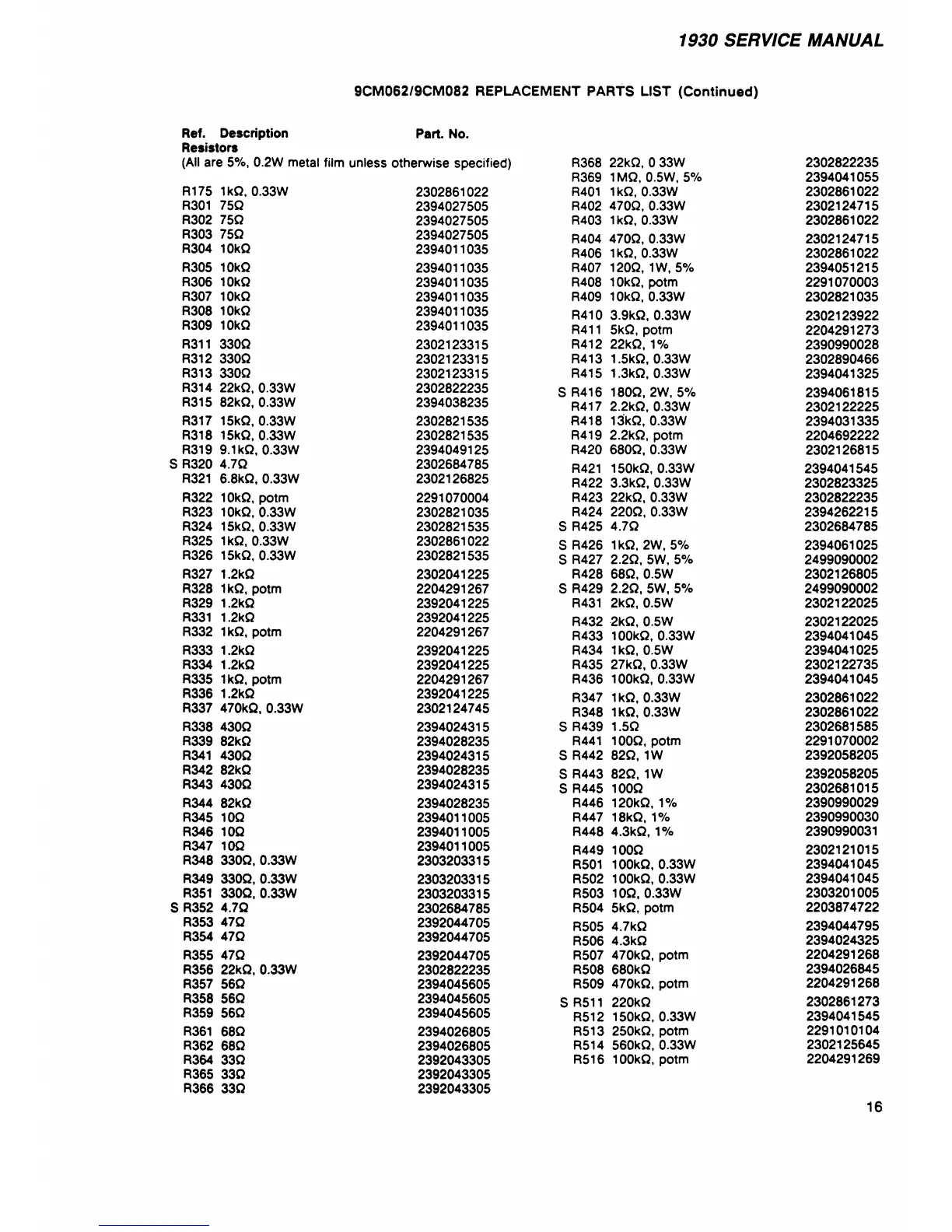 9CM062/9CM082 REPLACEMENT PARTS LIST (Continued)