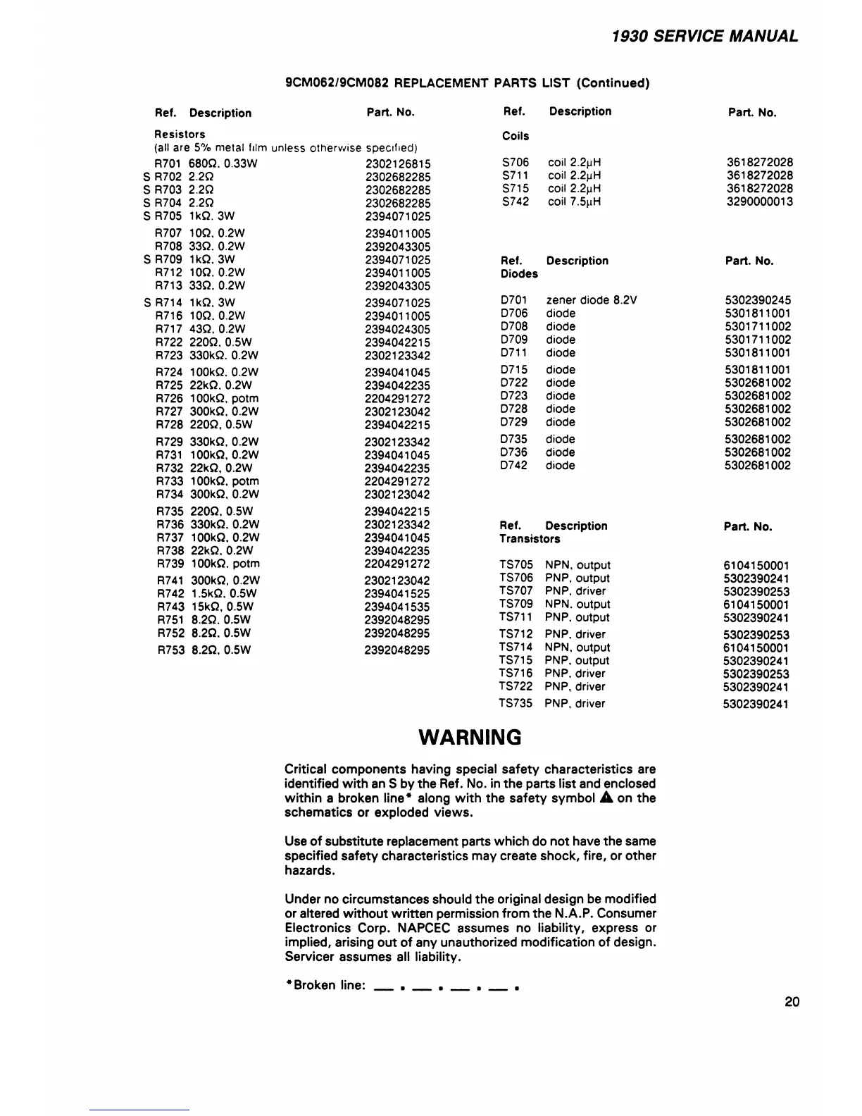 9CM062/9CM082 REPLACEMENT PARTS LIST (Continued)