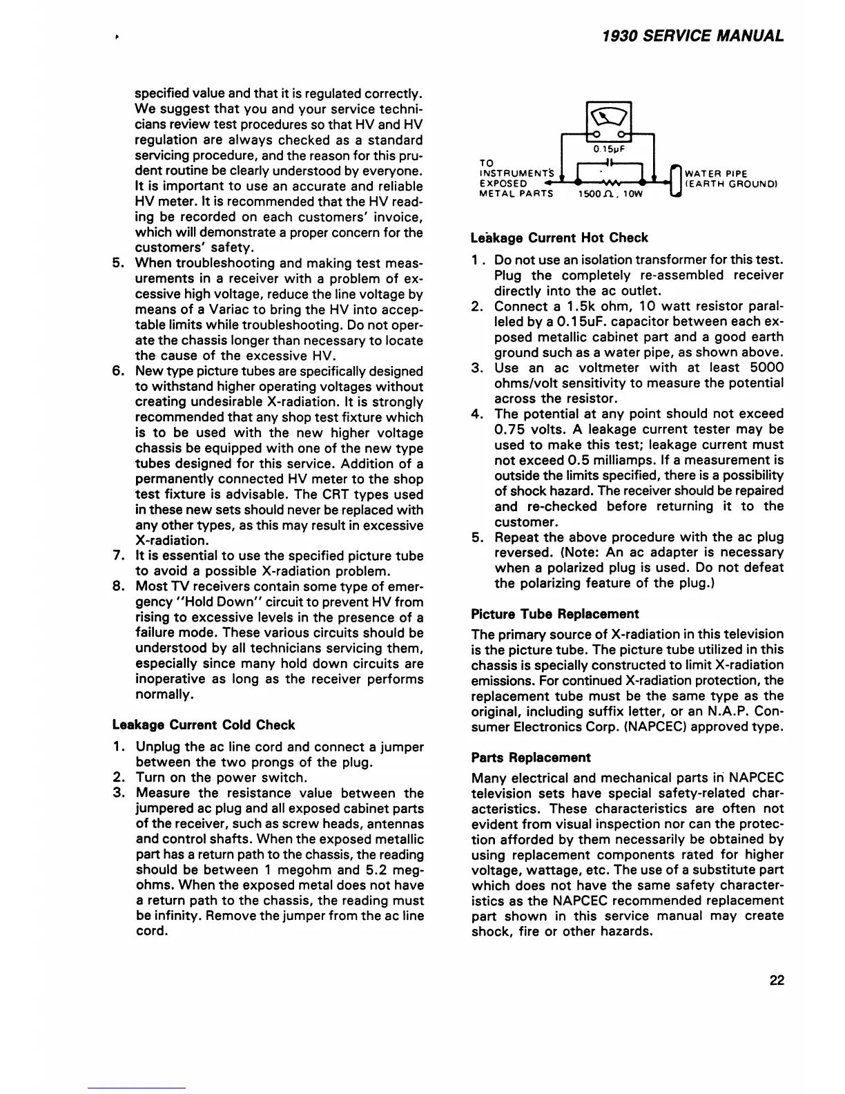 HV meter. It is recommended that the HV read