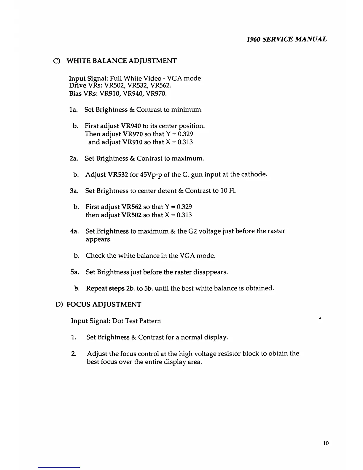 b. Adjust VR532 for 45Vp-p of the G. gun input at the cathode.