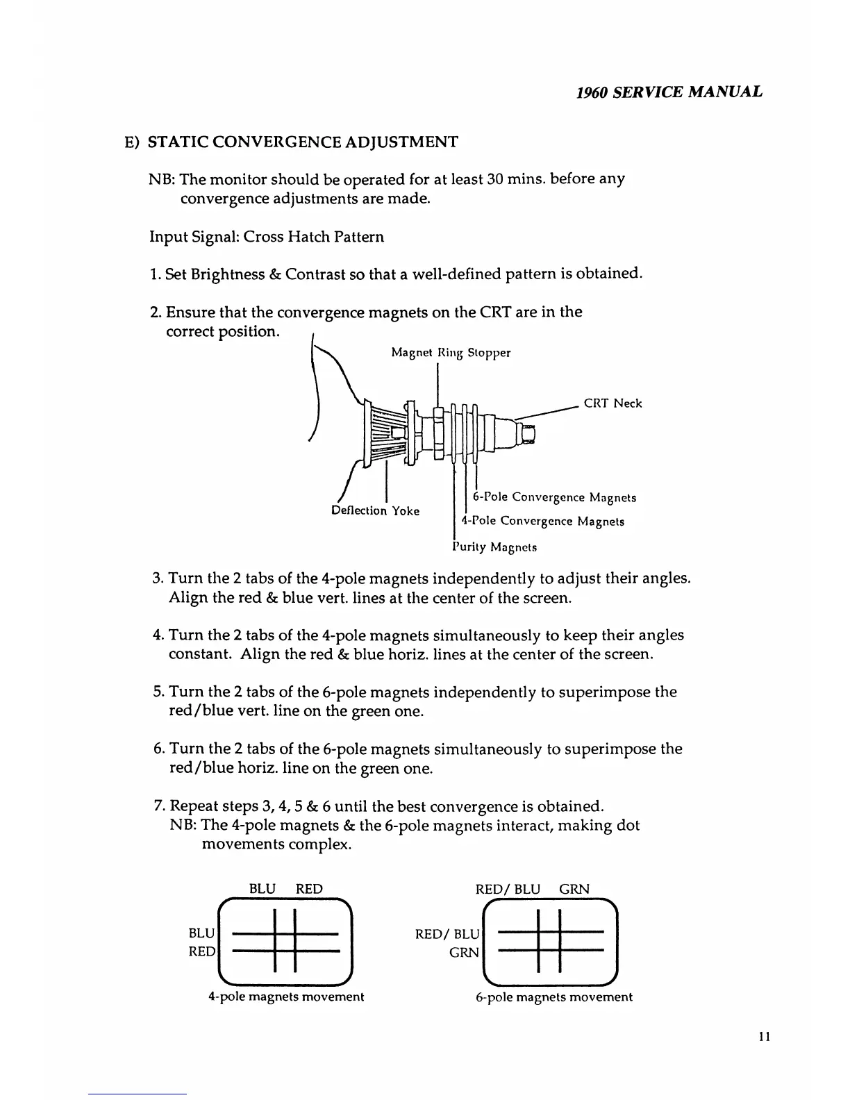 2. Ensure that the convergence magnets on the CRT are in the