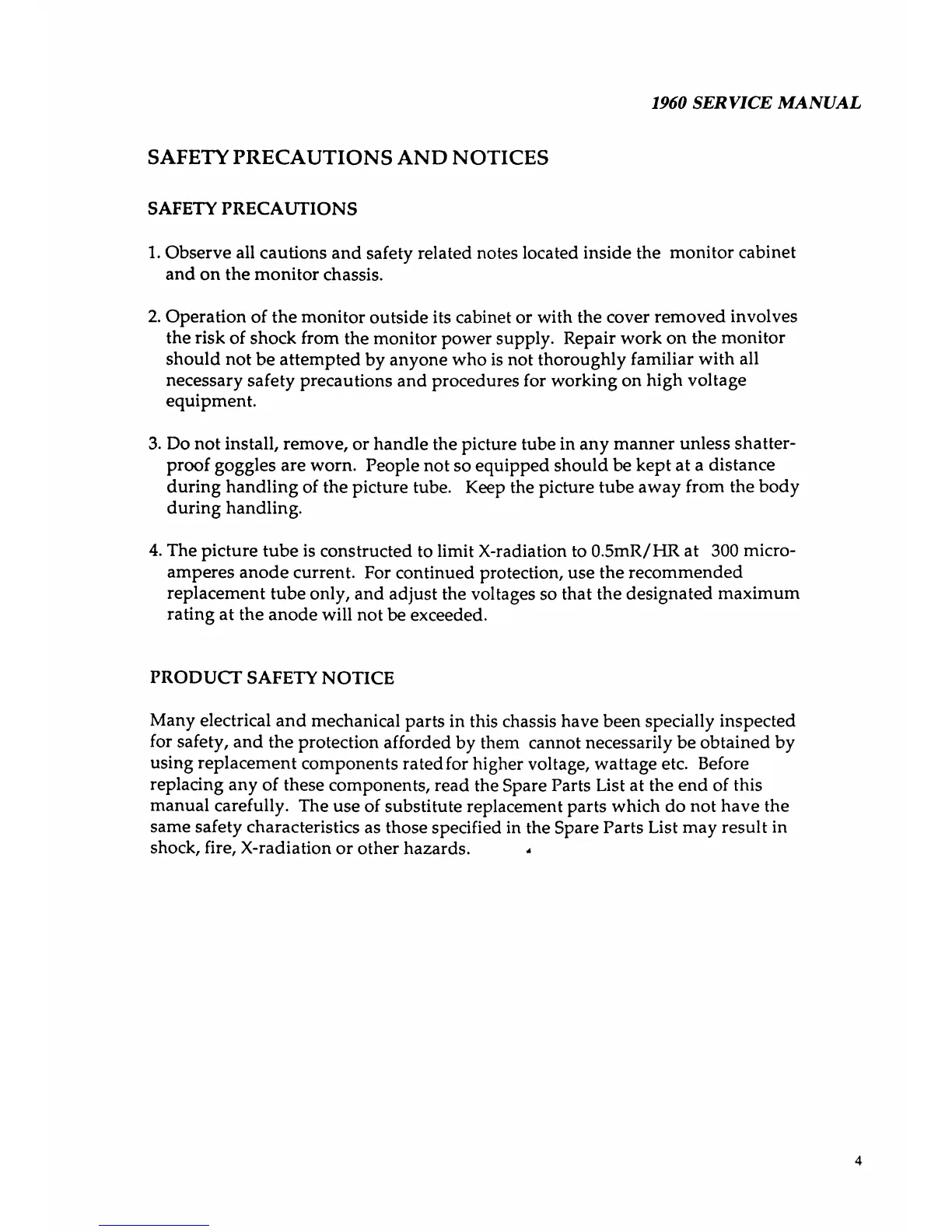 4. The picture tube is constructed to limit X-radiation to 0.5mR/HR at 300 micro