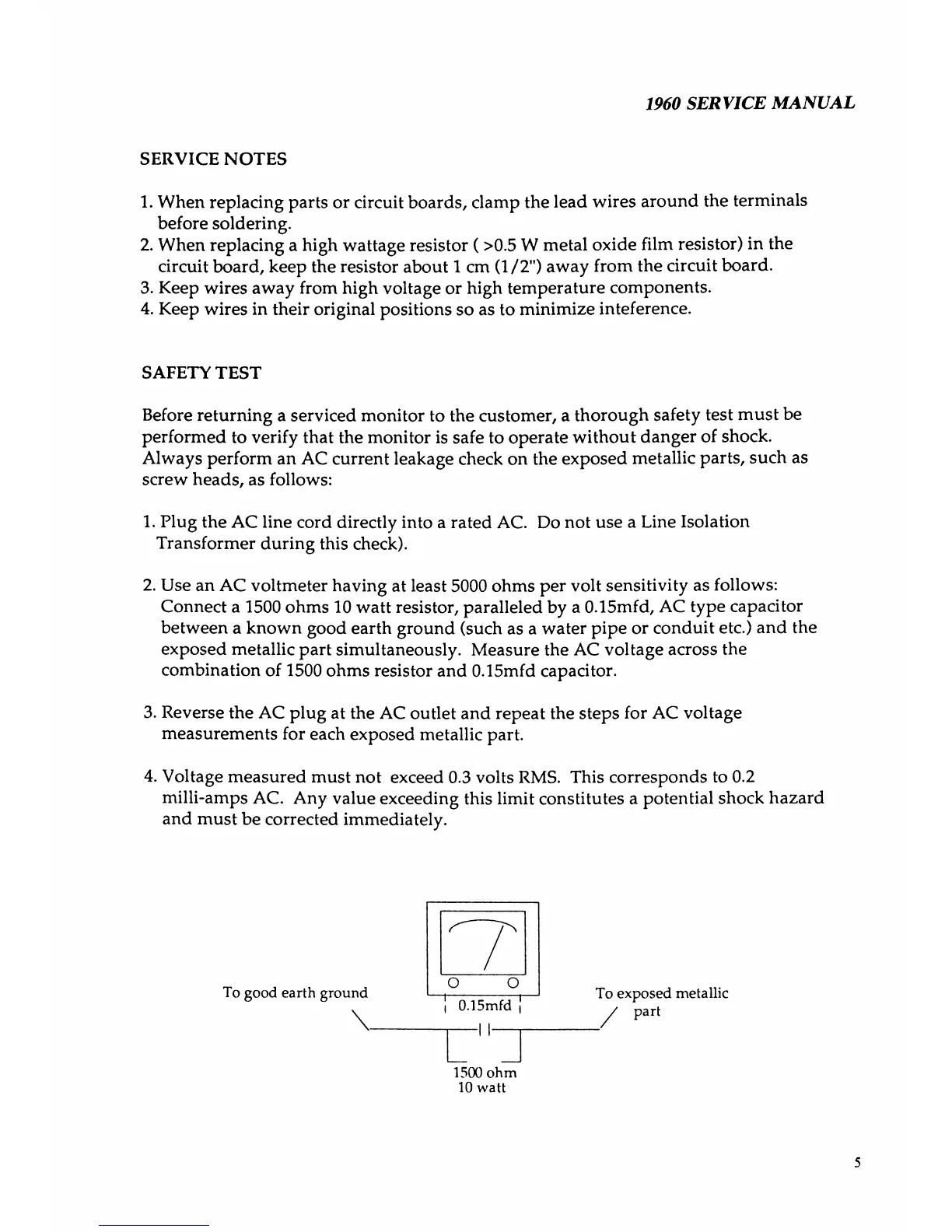 2. Use an AC voltmeter having at least 5000 ohms per volt sensitivity as follows: