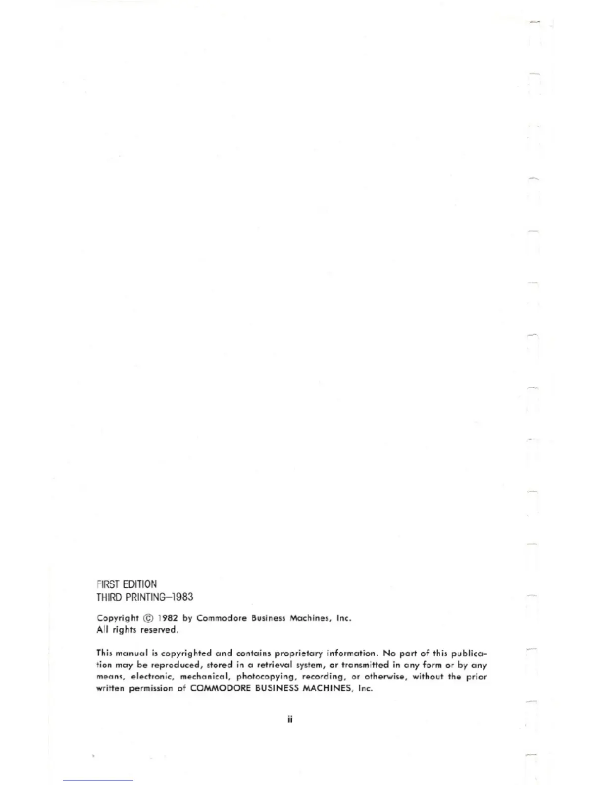 Copyright @ 1982 by Commodore Business Machines, Inc.