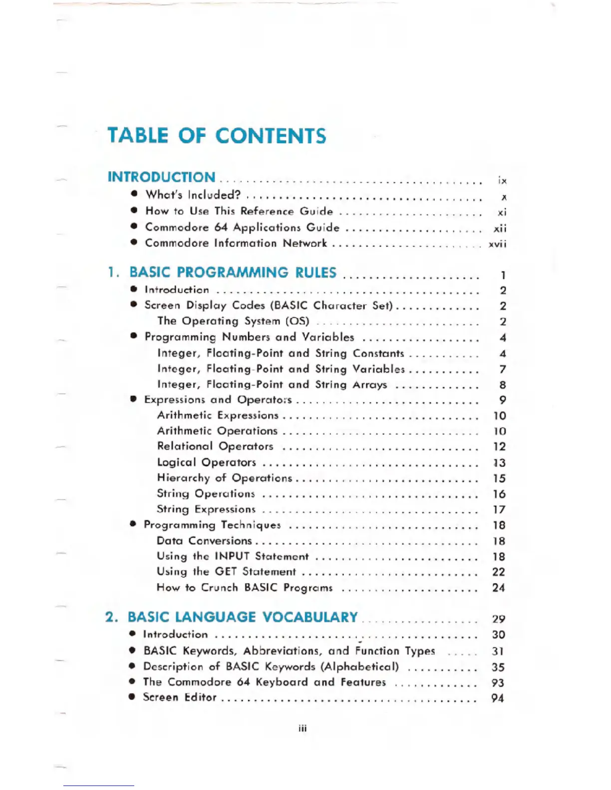 . Commodore 64 ApplicationsGuide. . . . . . . . . . . . . . . . . . . .. xii